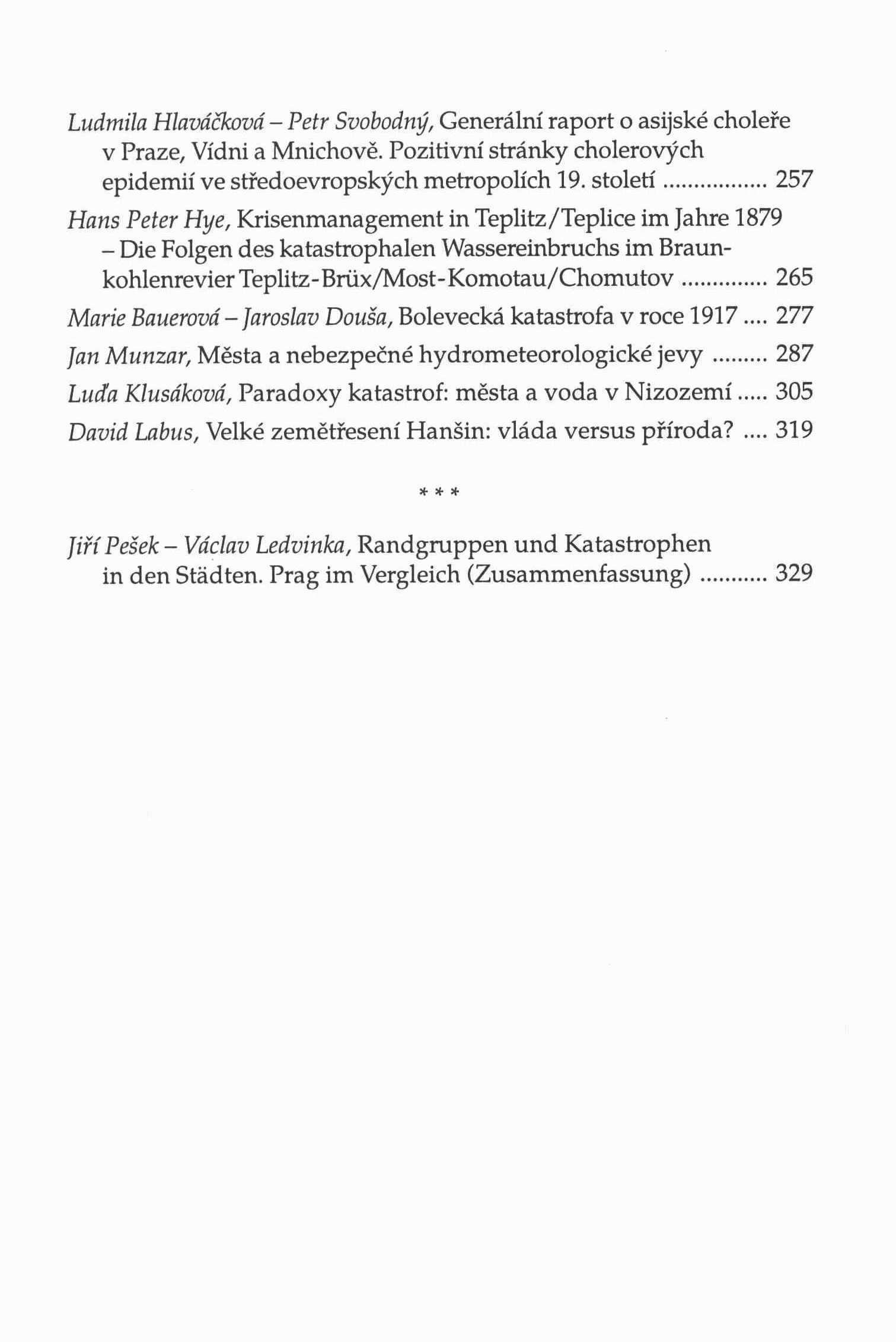 1. Názvové údajePonížení a odstrčení ; Města versus katastrofy : sborník příspěvků z 8. vědeckého zasedání Archivu hlavního města Prahy, konaného ve dnech 2. a 3. října 1990, a z 13. vědeckého zasedání Archivu hlavního města Prahy, uspořádaného ve spolupráci s Ost- und Südosteuropa Institut Wien - Aussenstelle Brno ve dnech 3. a 4. října 1995 / sestavili Jiří Pešek a Václav Ledvinka ; [překlad resumé do němčiny Jiří Pešek a Anna Ohlídalová ; návrh obálky Marek Lašťovka ; typografická úprava a sazba Miroslav Veselka]