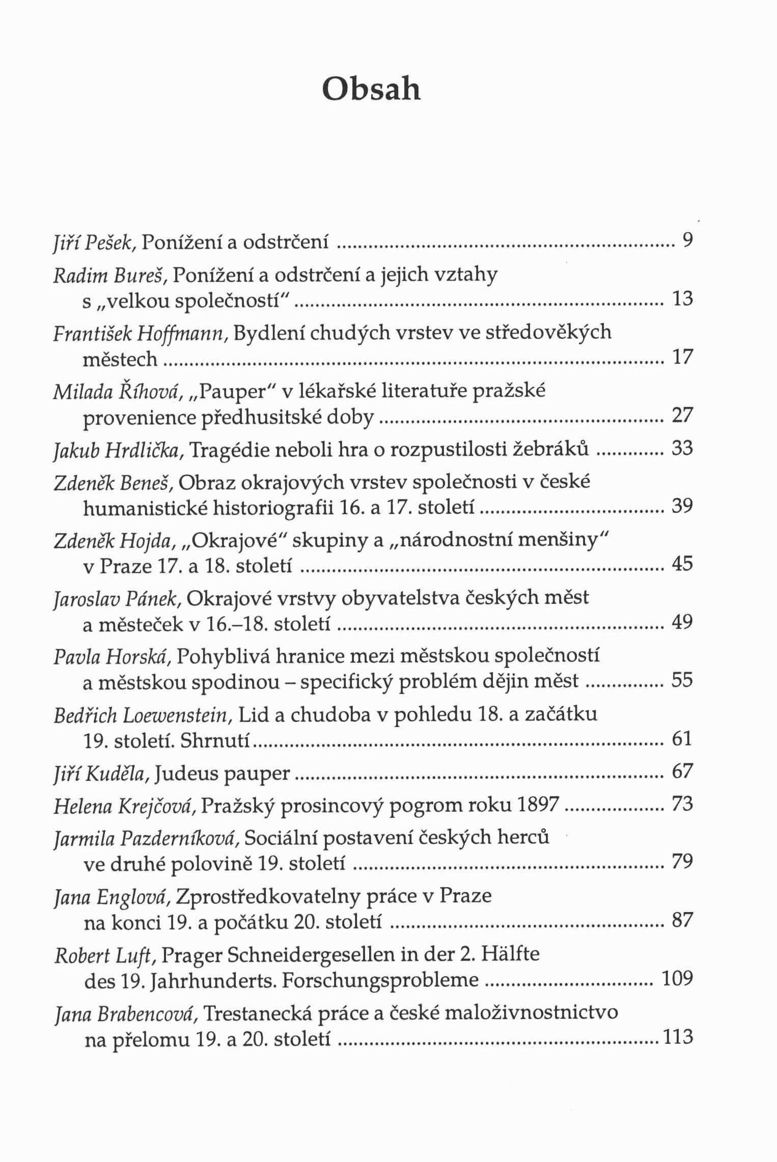 Klíčová slova české země * česká města * historie * městské obyvatelstvo * chudina * sociální třídy * sociální struktura * sociální poměry * katastrofy * epidemie * chudoba * stol. 16.-20. * sborník příspěvků
