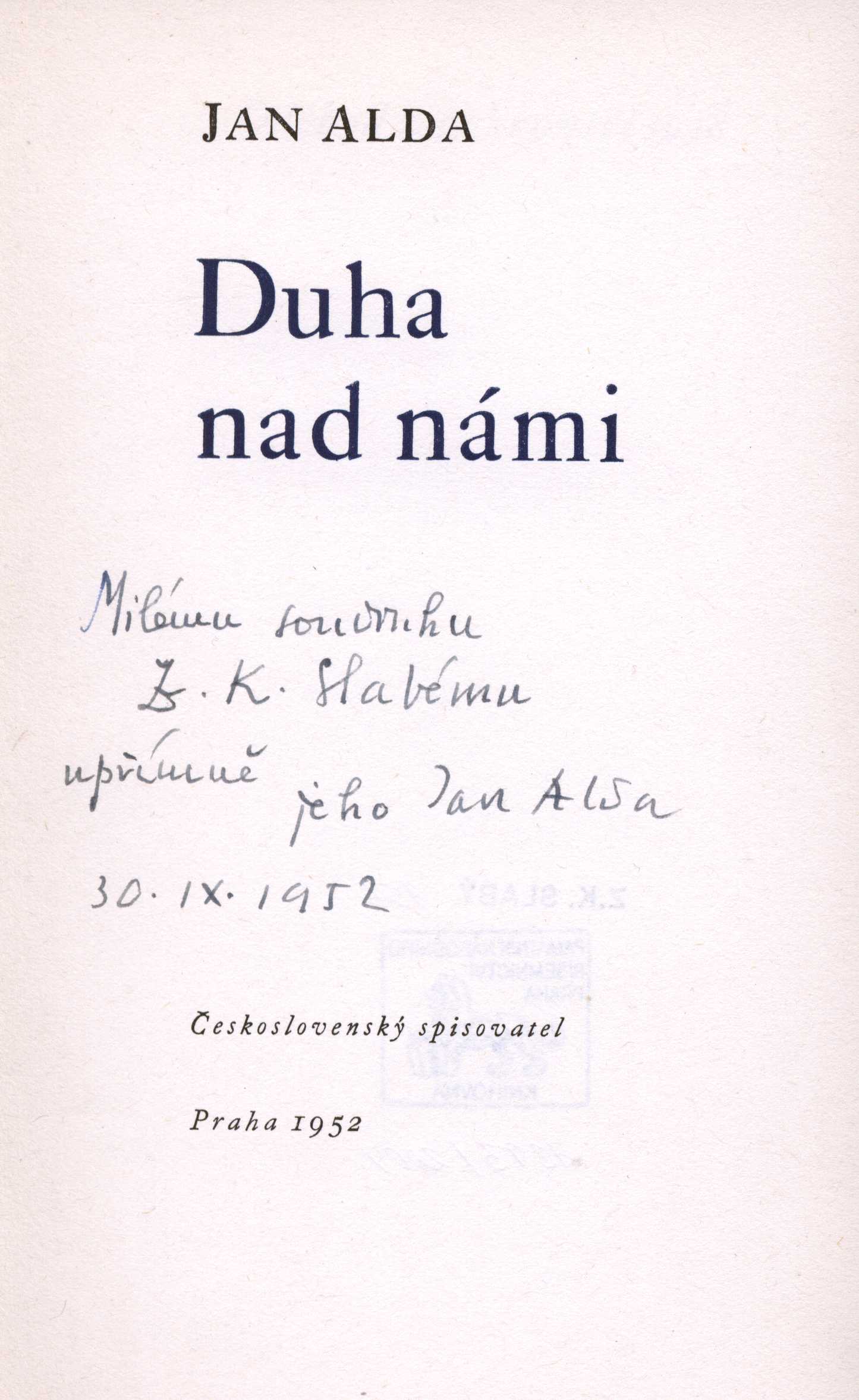 Názvové údaje Duha nad námi / Jan Alda ; [obálku a vazbu navrhl Josef Paukert ; typograficky upravil Antonín Dvořák] Osobní jméno Alda, Jan, 1901-1970 (Autor) (Dedikátor) Další autoři Paukert, Josef, 1915-1991 (Autor obálky) (Výtvarník vazby) Dvořák, Antonín, 1920-1997 (Typograf) Slabý, Zdeněk Karel, 1930-2020 (Dedikant) Korp. Československý spisovatel (nakladatelství) (Nakladatel, vydavatel) Údaje o vydání 1. vyd Nakladatel Praha : Československý spisovatel, 1952 Rozsah 90 s. ISBN (váz.) brož. Edice České básně sv. 108