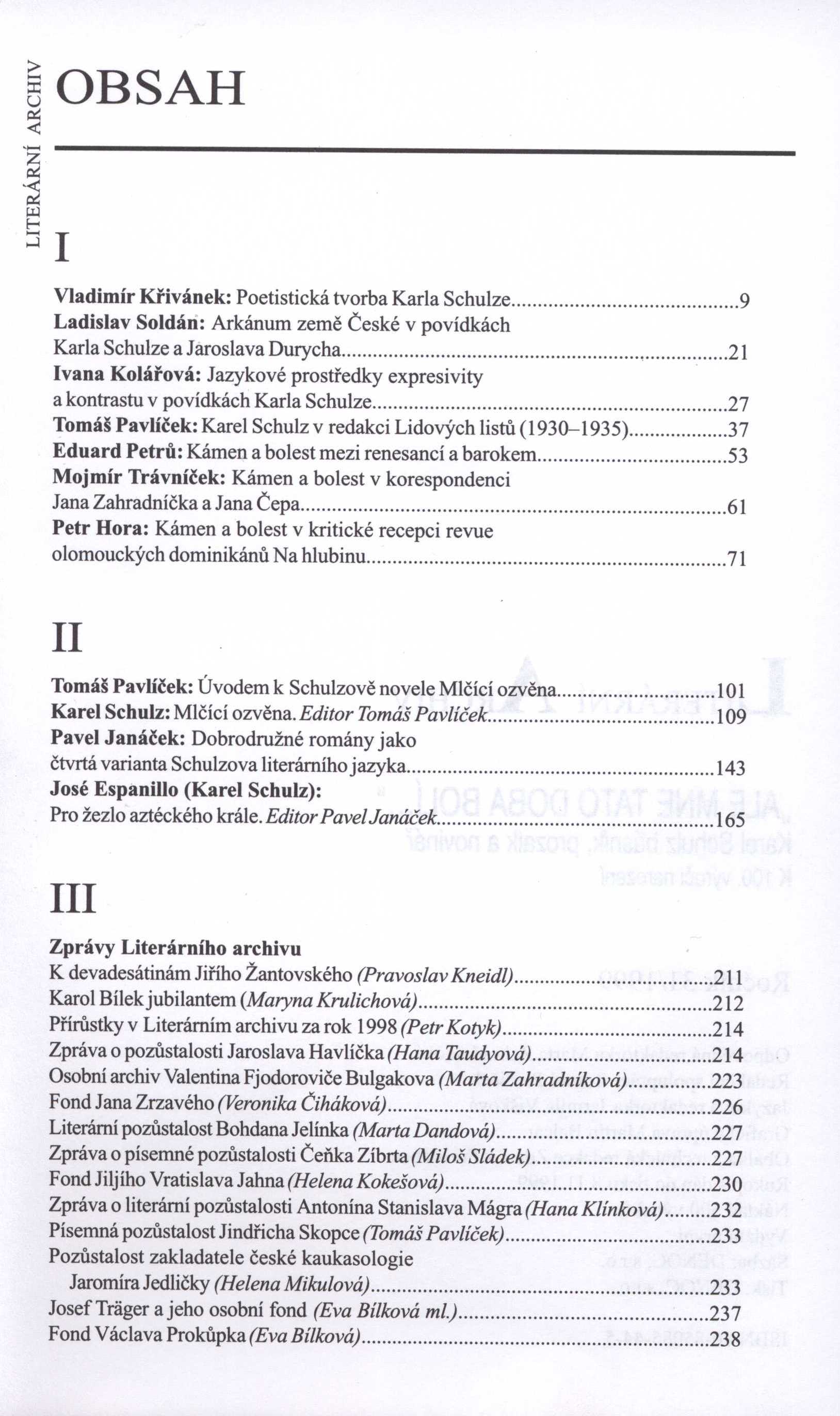 Klíčová slova česká literatura * Památník národního písemnictví * literární archiv * archivní fondy * pozůstalosti * čeští spisovatelé * korespondence * Schulz K. * stol. 20. * r. 1999 * literární sborníky