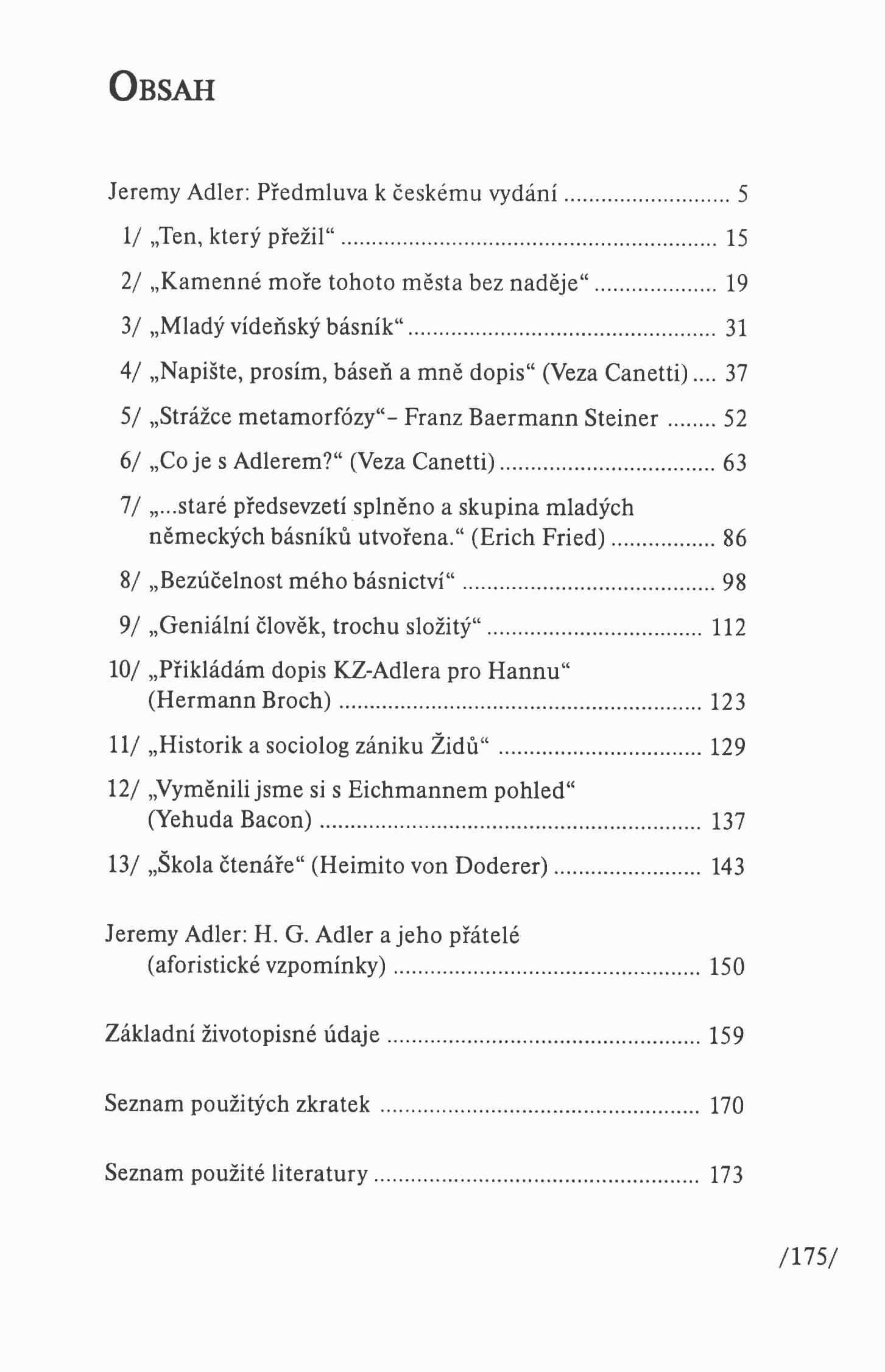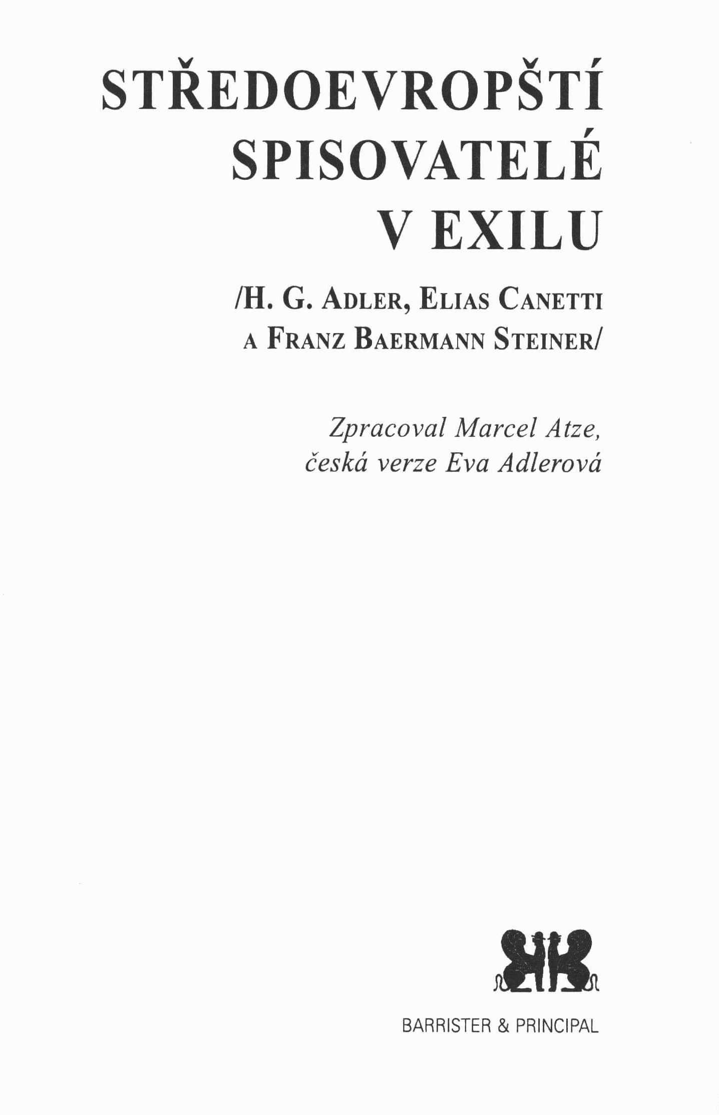 Názvové údaje Středoevropští spisovatelé v exilu : H.G. Adler, Elias Canetti a Franz Baermann Steiner / zpracoval Marcel Atze ; česká verze Eva Adlerová ; [grafická úprava Zdeněk Granát] Osobní jméno Atze, Marcel, 1967- (Autor) Další autoři Adlerová, Eva (Autor) (Překladatel) Granát, Zdeněk, 1965- (Knižní grafik) Údaje o vydání 1. vyd. Nakladatel Brno : Barrister & Principal, 2000 Rozsah 175 s., [16] s. obr. příl. : il., portréty, faksim. ISBN 80-85947-49-8 (brož.) Země vyd. Česko Jazyk dok. čeština Jazyk orig. němčina Poznámky Zdobená barevná obálka. - Přeloženo z němčiny. - Předmluva. - Černobílé fotografie a faksimile v obrazové příloze. - Základní životopisné údaje. - Seznam použitých zkratek. - Obsahuje bibliografii.