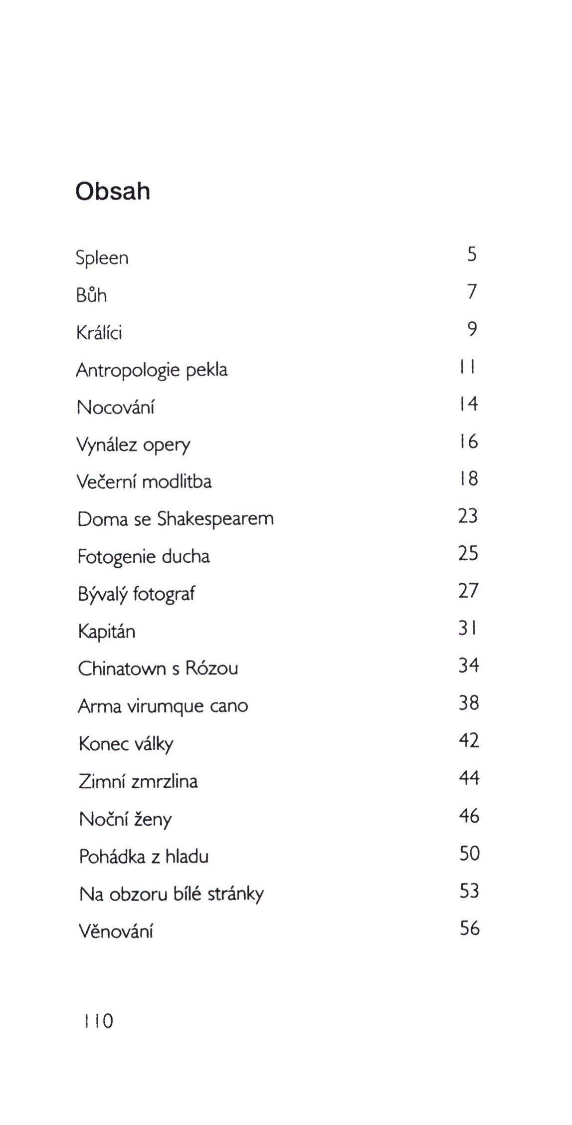 Zdobená barevná obálka. - Přes obálku založená bílá páska s nápisem přes přední stranu obálky: „kniha do snových vlaků... kniha do snových vlaků..." a nápisem přes zadní stranu obálky: „... zanechte prosím ve snovém kupé dalšímu čtenáři...". - Na přední záložce poznámka o autorovi s čb. fotografií autora. - Typografický titulní list. - Obsah. - Tiráž. - Na zadní záložce česká bibliografie autorovy tvorby.