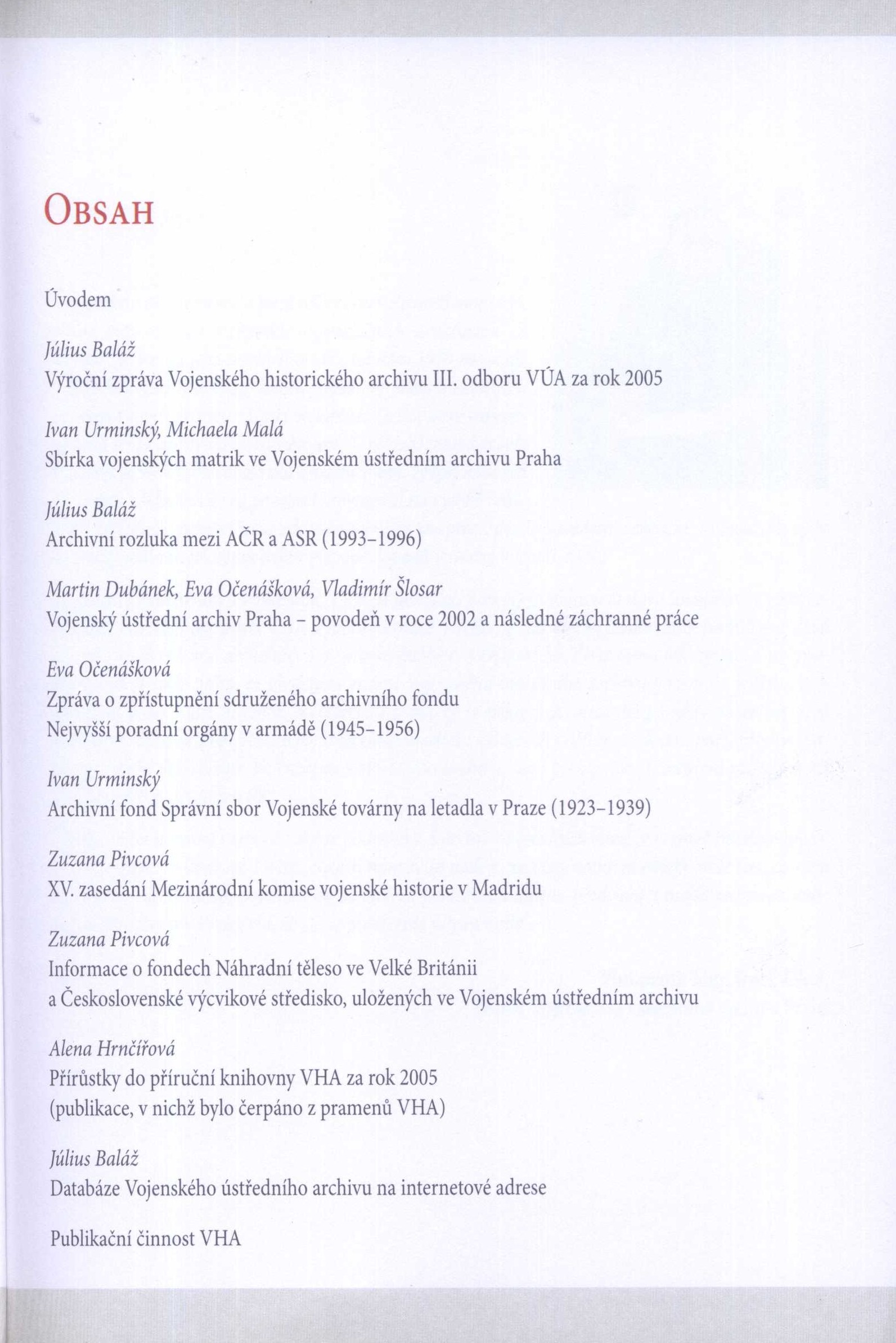 Poznámka o dalších původcích Do tisku připravil Július Baláž Grafická úprava Jaroslava Lažanová Druh dok. PERIODIKA - Svázaný ročník periodika Periodicita 1x ročně Poznámky o skryté bibliografii a rejstřících Obsahuje bibliografii a bibliografické odkazy Nadřízená jednotka Ročenka Klíčová slova Vojenský historický archiv * archivní dokumenty * archivní fondy * archivní činnost * soupisy * výroční zprávy * r. 2005 * ročenky MDT 930.253 * 06.055.5 * (058) Signatura Přír.číslo Lokace Info C12b 9455 1455/2006 Fond C12b 9455a 1454/2006 Fond