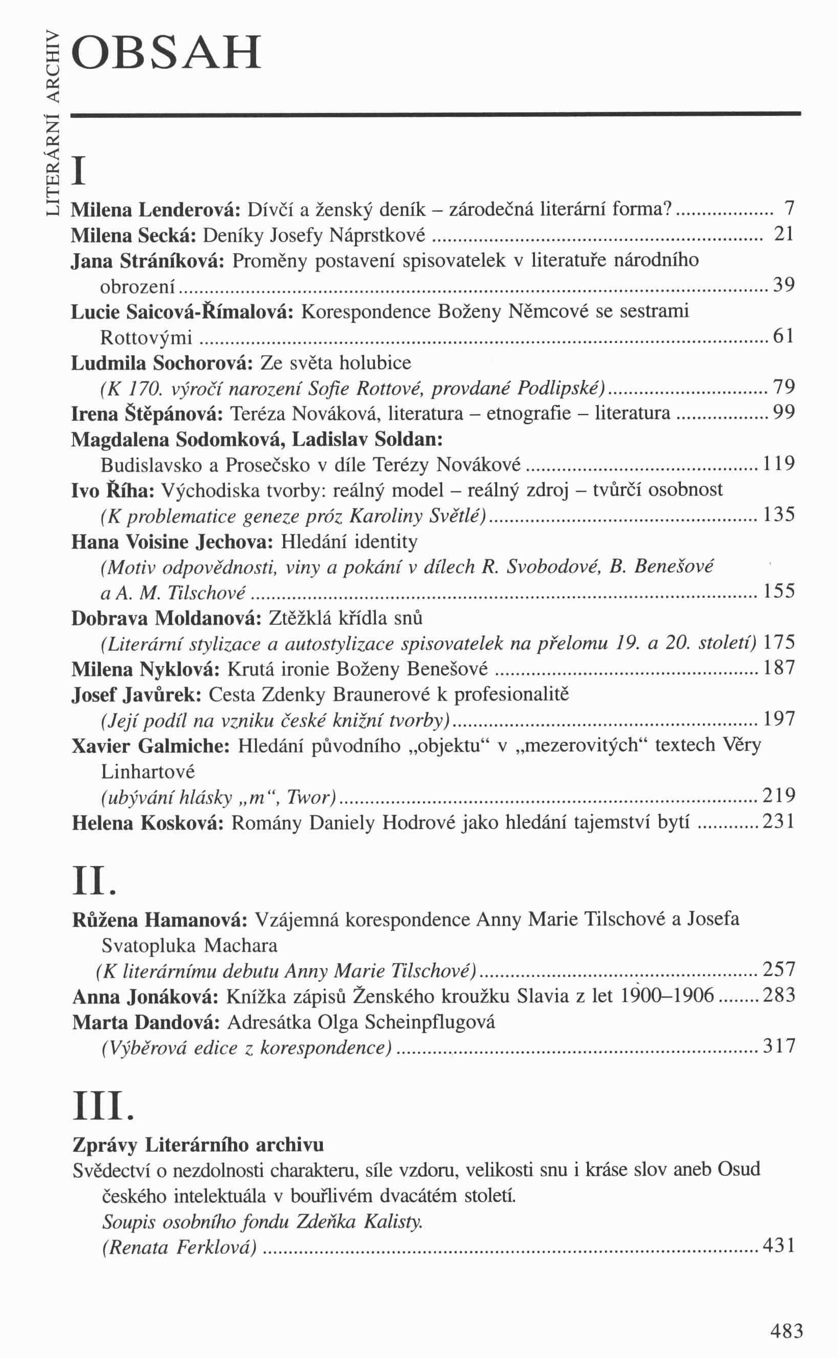 1. Názvové údajeLiterární archiv : sborník Památníku národního písemnictví = Jahrbuch des Museums des tschechischen Schrifttums = Annual of the Museum of the Czech Literature = Mémoires du Musée de la Littérature Tchèque. Ztěžklá křídla snů : ženy v české literatuře / odpovědná redaktorka Marta Zahradníková ; grafická úprava David Martinek ; obálka a technická redakce Zdeněk Freisleben