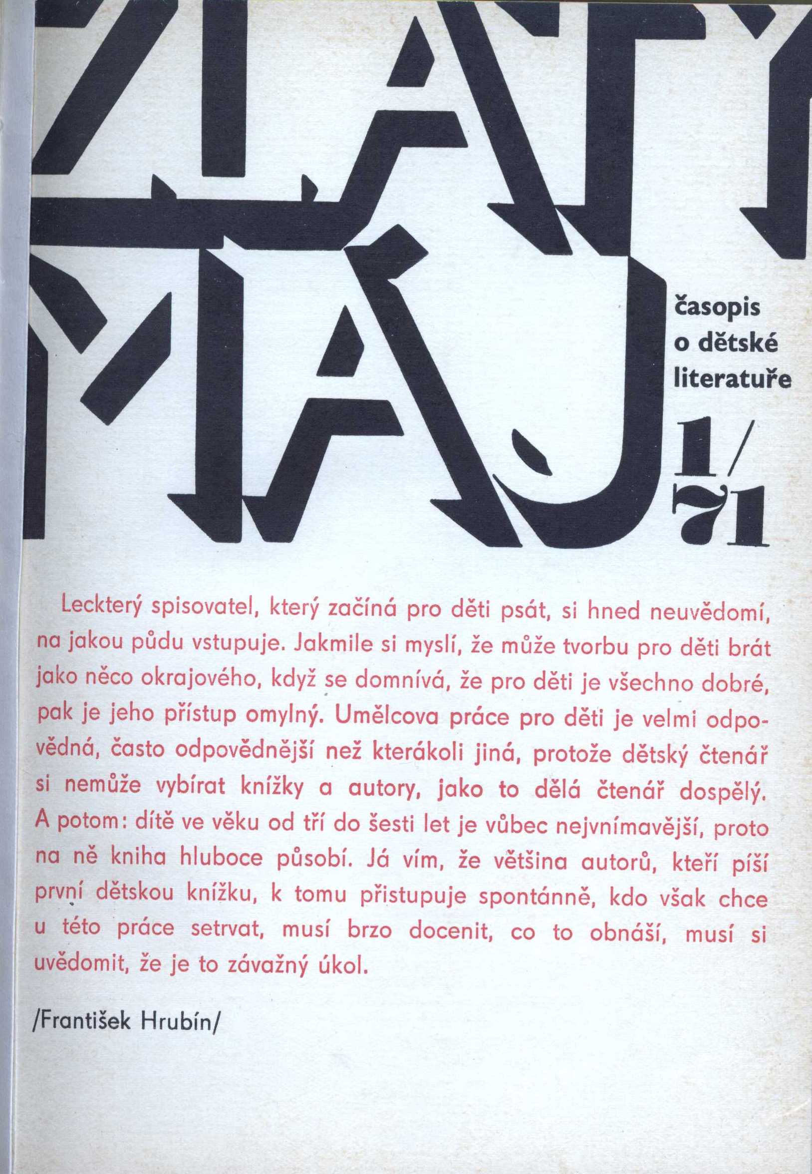 Názvové údaje Zlatý máj : časopis o dětské literatuře Další autoři Slabý, Zdeněk Karel, 1930-2020 (Šéfredaktor, odpovědný redaktor) Sliacky, Ondrej, 1941- (Redaktor, výkonný redaktor) Lapáček, Jiří (Šéfredaktor, odpovědný redaktor) Kovařík, Jindřich, 1928-2019 (Autor obálky) (Knižní grafik) Korp. Nakladatelství Albatros (Nakladatel, vydavatel) Mladé letá (firma) (Nakladatel, vydavatel) Společnost přátel knihy pro mládež (Nakladatel, vydavatel) Roč., číslo Ročník 15, číslo 1-10, 1971 Nakladatel Praha : Albatros : Mladé letá, 1971 Rozsah 707 stran : ilustrace, fotografie, portréty ; 20,5 cm ISSN 0044-4871 Země vyd. Česko Jazyk dok. čeština * slovenština Poznámky Barevné obálky. - Čb. ilustrace, fotografie a portréty. - Český a slovenský text. - V tiráži uvedeno rovněž průběžné číslování od začátku vydávání