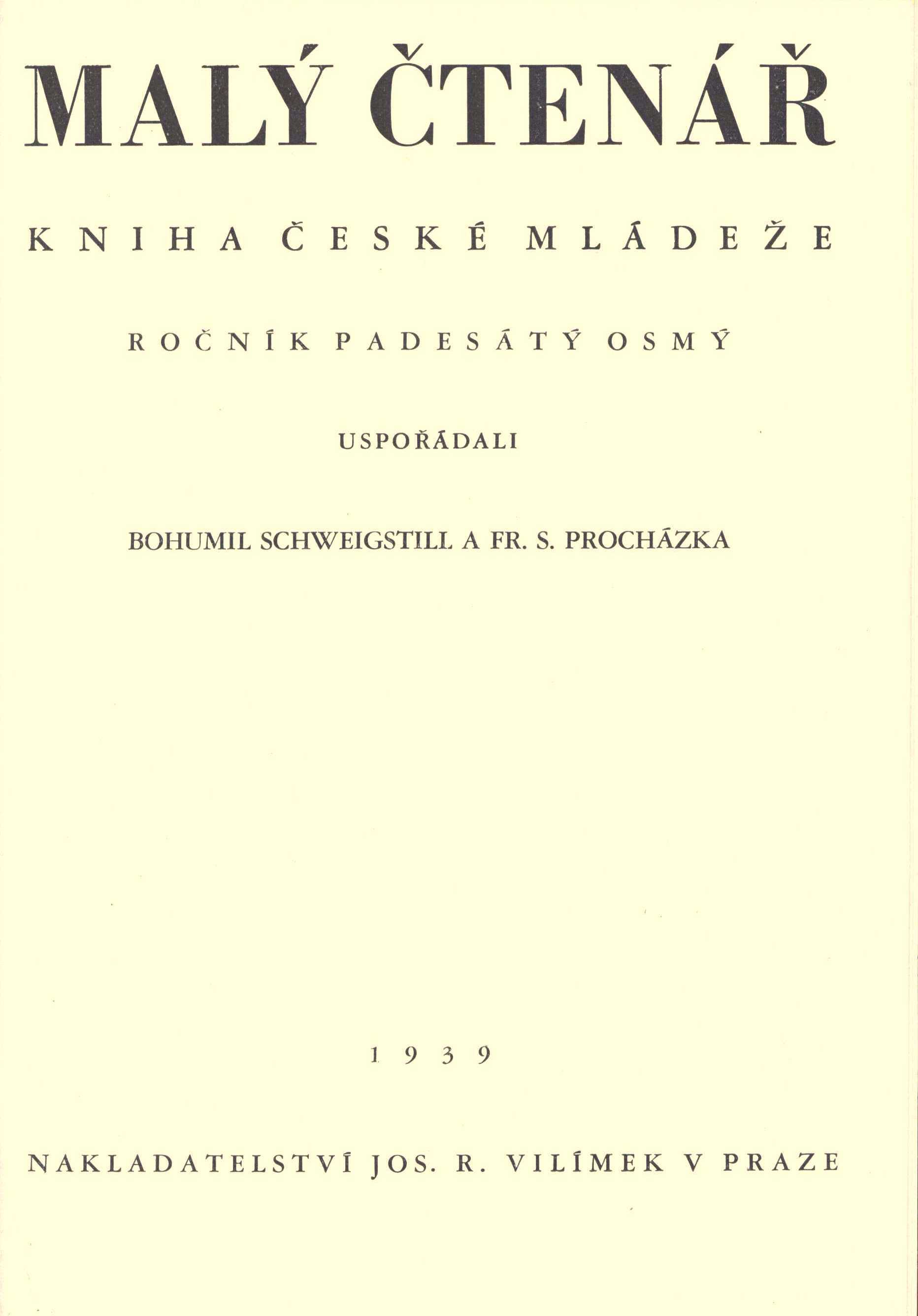 Uspořádali Bohumil Schweigstill a Fr. S. Procházka (do č. 11)