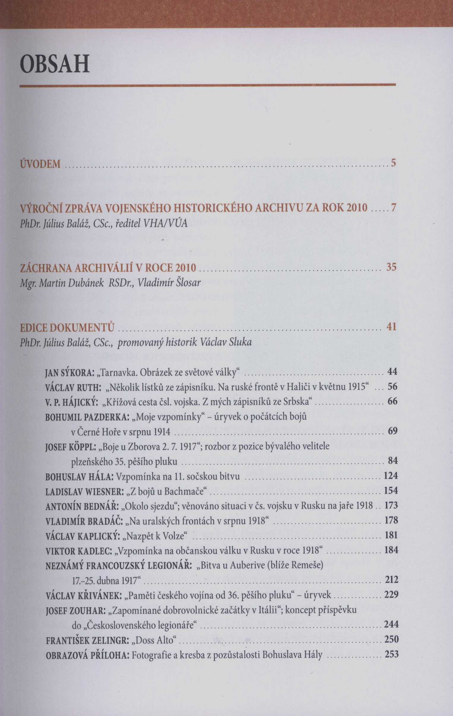 Názvové údaje Ročenka 2010 / Vojenský historický archiv ; sestavili Július Baláž, Martin Dubánek Záhlaví-korpor. Vojenský historický archiv (Autor) Další autoři Baláž, Július, 1959- (Sestavovatel, kompilátor) Dubánek, Martin, 1974- (Sestavovatel, kompilátor) Schulzová, Libora (Knižní grafik) Korp. Česko. Ministerstvo obrany (Odbor komunikace a propagace) (Nakladatel, vydavatel) Roč., číslo 2010 Údaje o vydání 1. vydání Nakladatel Praha : Ministerstvo obrany České republiky - Odbor komunikace a propagace, 2011 Rozsah 285 stran : ilustrace, faksimile ISBN 978-80-7278-558-2 (brožováno) Země vyd. Česko Jazyk dok. čeština Poznámky Zdob. obálka. - Barevné i čb. fotografie a faksimile