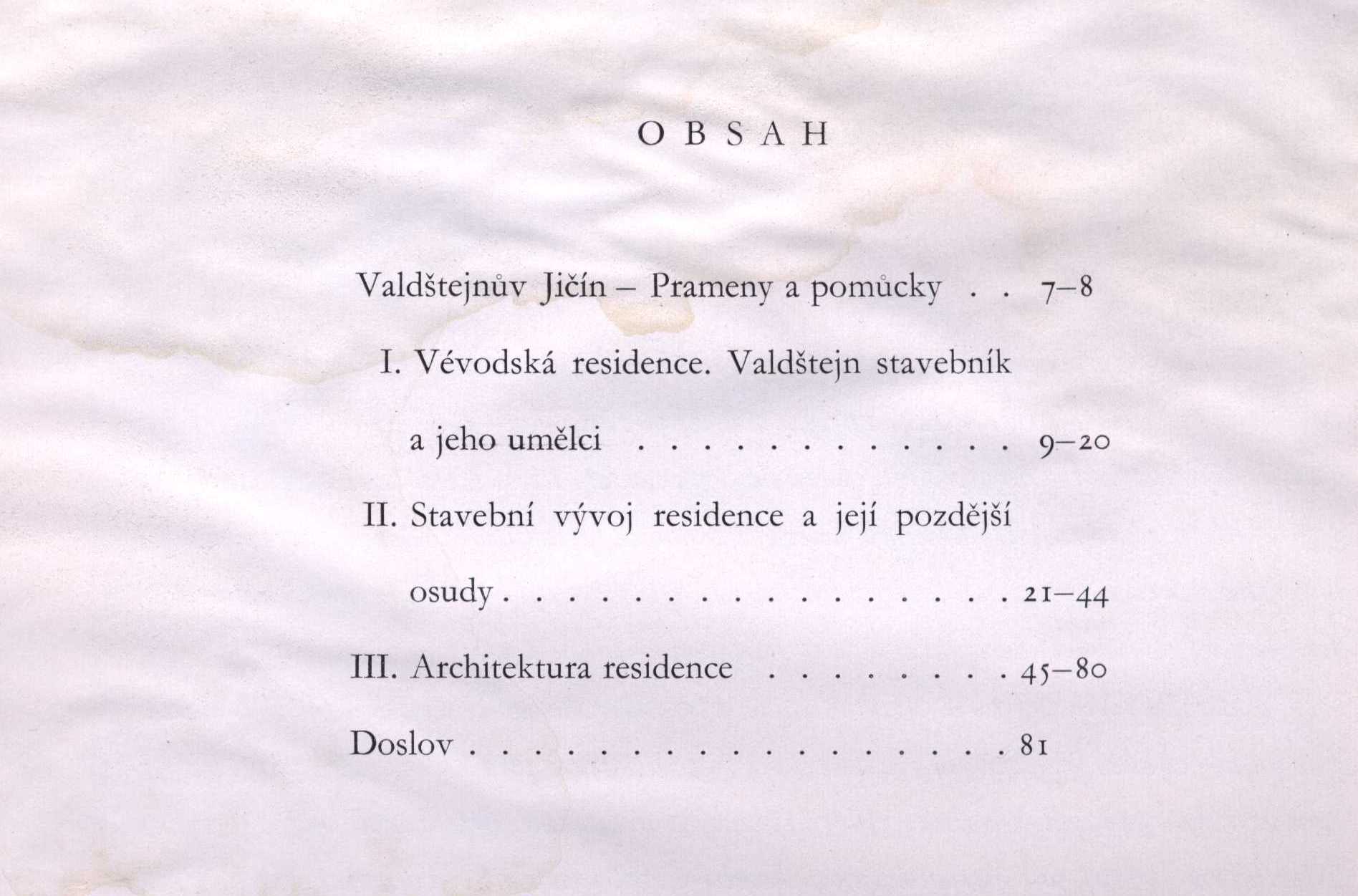 Názvové údaje Valdštejnův Jičín : příspěvek k dějinám barokního stavitelství v Čechách / J. Morávek, Zd. Wirth Osobní jméno Morávek, Jan, 1887-1960 (Autor) Další autoři Wirth, Zdeněk, 1878-1961 (Autor) Korp. Jan Štenc (nakladatelství, tiskárna) (Nakladatel, vydavatel) Průmyslová tiskárna v Praze (Tiskař) Nakladatel Praha : Jan Štenc, 1946 Výrobce (Průmyslová tiskárna) Rozsah 78 s. : il. ISBN brož. Země vyd. Česko Jazyk dok. čeština Poznámky Zdobená obálka. - Portrét A. z Valdštejna proti titulu. - Doslov autorů. - Čb. fotografie, kresby a plánky. - Štočky a obálka z grafického závodu Jana Štence. - Obsahuje bibliografické odkazy.