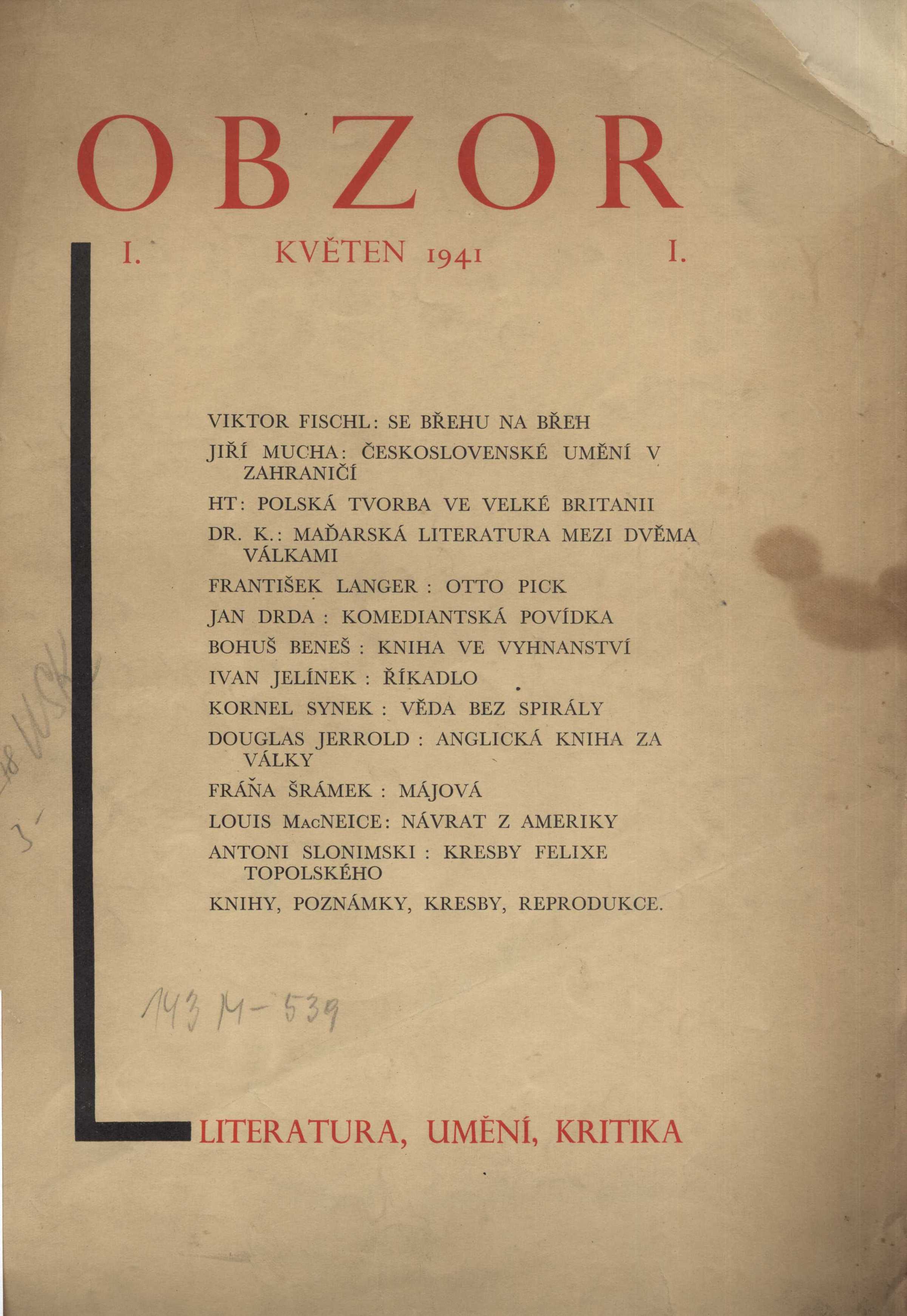 Názvové údaje Obzor : literatura, umění, kritika Další autoři Beneš, Bohuš, 1901-1977 (Šéfredaktor, odpovědný redaktor) Roč., číslo Ročník 1, číslo 1-8, 1941 Nakladatel Londýn : [Čechoslovák], 1941 Výrobce Unwin Brothers Ltd. Rozsah ilustrace, fotografie ; 33 cm Země vyd. Velká Británie Jazyk dok. čeština Poznámky Čb. ilustrace a fotografie.