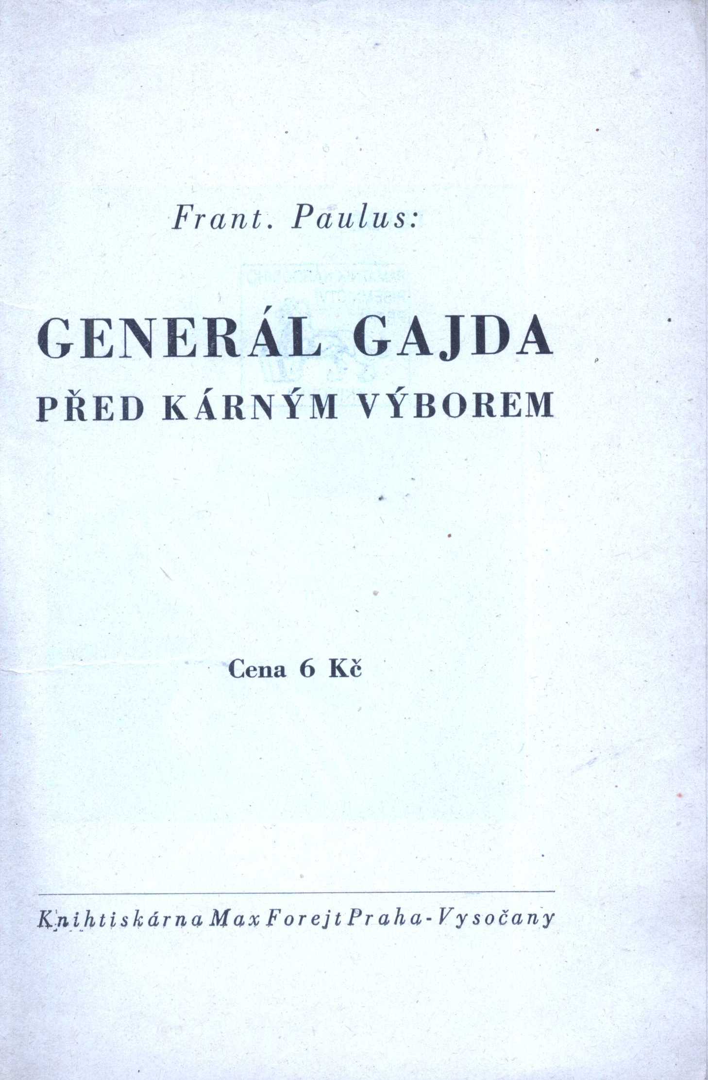 1. Názvové údajeGenerál Gajda před kárným výborem / Frant. Paulus