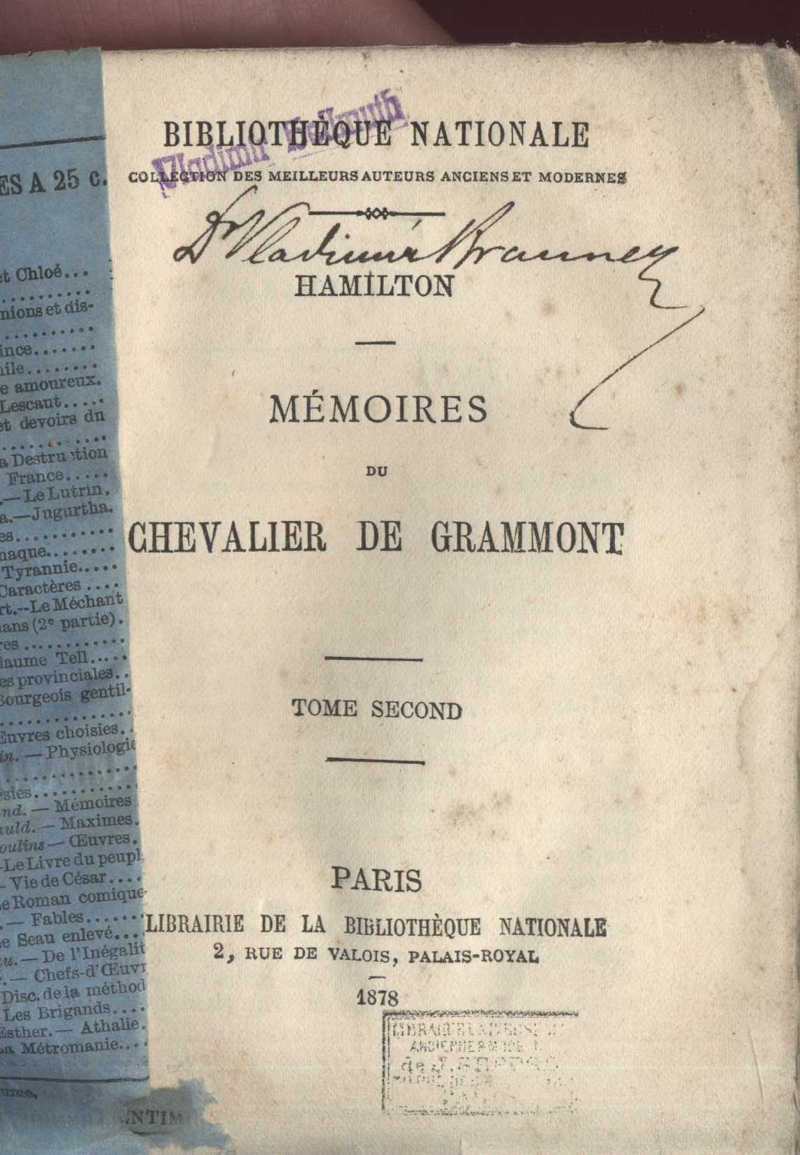 Názvové údaje Mémoires du chevalier de Grammont / Hamilton. tome 2nd Osobní jméno Hamilton, Antoine, asi 1646-1720 (Autor) Další autoři Brauner, Vladimír, 1853-1924 (Dřívější majitel) (Autor podpisu) Korp. Librairie de la Bibliothèque Nationale (Paris, Francie) (Nakladatel, vydavatel) Imprimerie Nouvelle. (association ouvrère). A. Mangeot, directeur (Paris, Francie) (Tiskař) Nakladatel Paris : Librairie de la Bibliothèque Nationale, 1878 Výrobce (Imprimerie Nouvelle) Rozsah 182 s. ISBN brož. Edice Bibliothèque Nationale