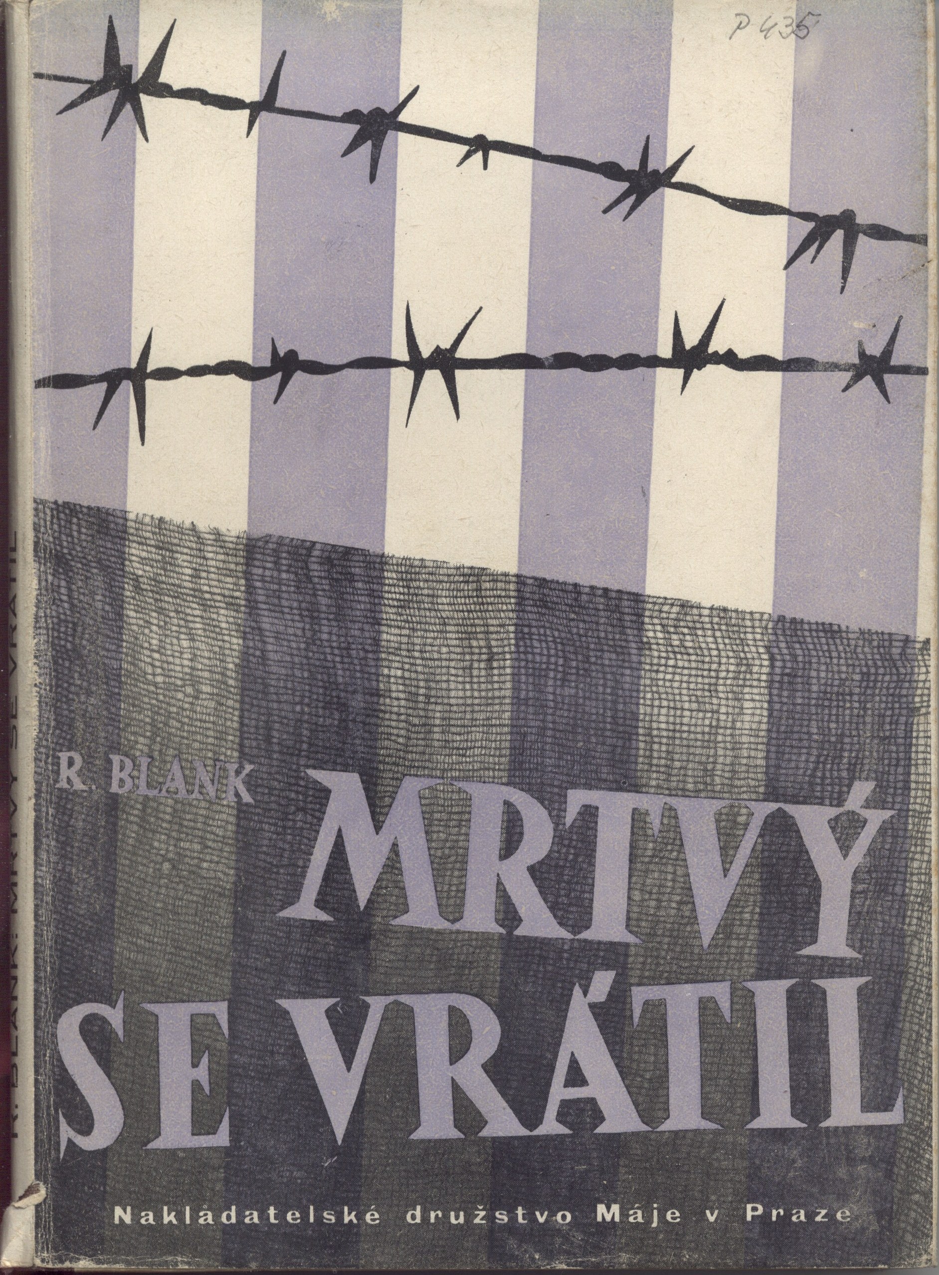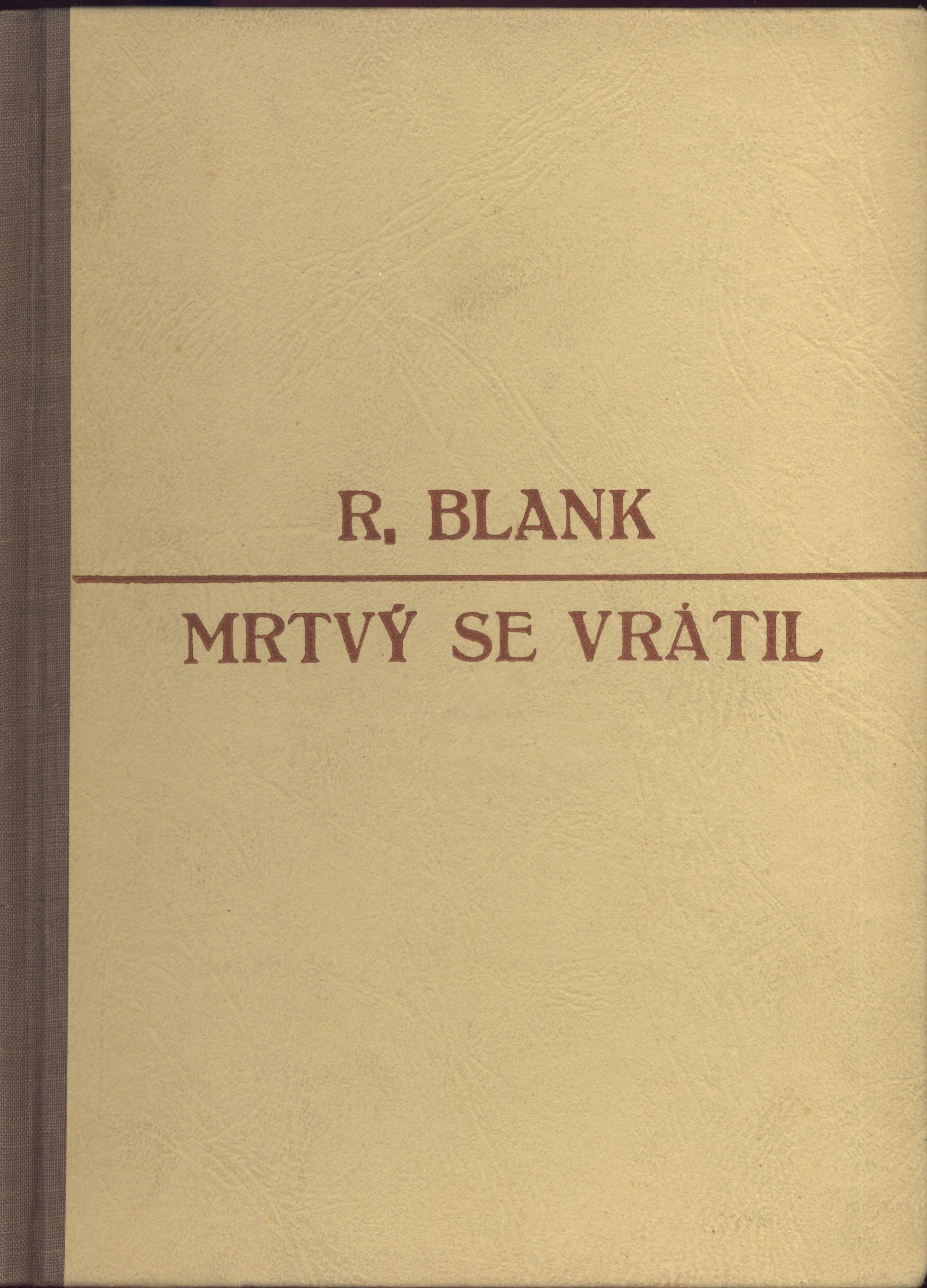 Tiráž: "R. Blank. Mrtvý se vrátil. Vydalo Nakladatelské družstvo Máje v Praze 1946 jako členský svazek pro Světový literární klub. S obálkou akad. mal. V. Fialy [sic!]. Vytiskla písmem garmond Perikles tiskárna "Svoboda", Jablonec n. N. Vydání druhé."