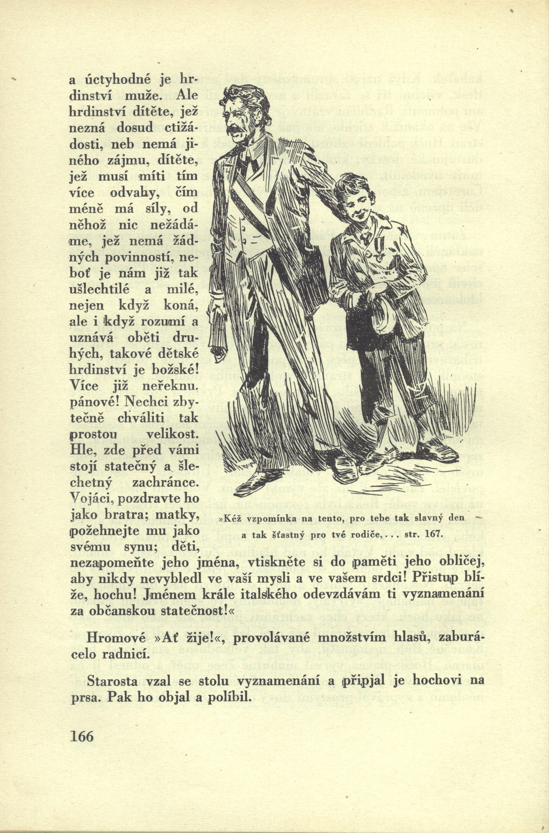 Názvové údaje Srdce / Edmondo de Amicis ; přeložil Karel Málek ; ilustroval malíř M. Novák Osobní jméno De Amicis, Edmondo, 1846-1908 (Autor) Další autoři Málek, Karel (Překladatel) (Autor úvodu atd.) Novák, Miloš, 1909-1988 (Ilustrátor) Horník, František, 1889-1955 (Autor obálky) Korp. Vojtěch Šeba (nakladatelství) (Nakladatel, vydavatel) Nakladatel Praha : Nakladatelství Vojtěch Šeba, knihkupectví, [194-] Rozsah 241 s. : il. ; 25 cm ISBN (váz.) Země vyd. Česko Jazyk dok. čeština Jazyk orig. italština Poznámky Barevná obálka. - Zdobená vazba. - Patitul. - Titulní list s ilustrací. - Předmluva překladatele. - Černobílé ilustrace v textu. - Vysvětlivky. - Obsah. - Bez tiráže.
