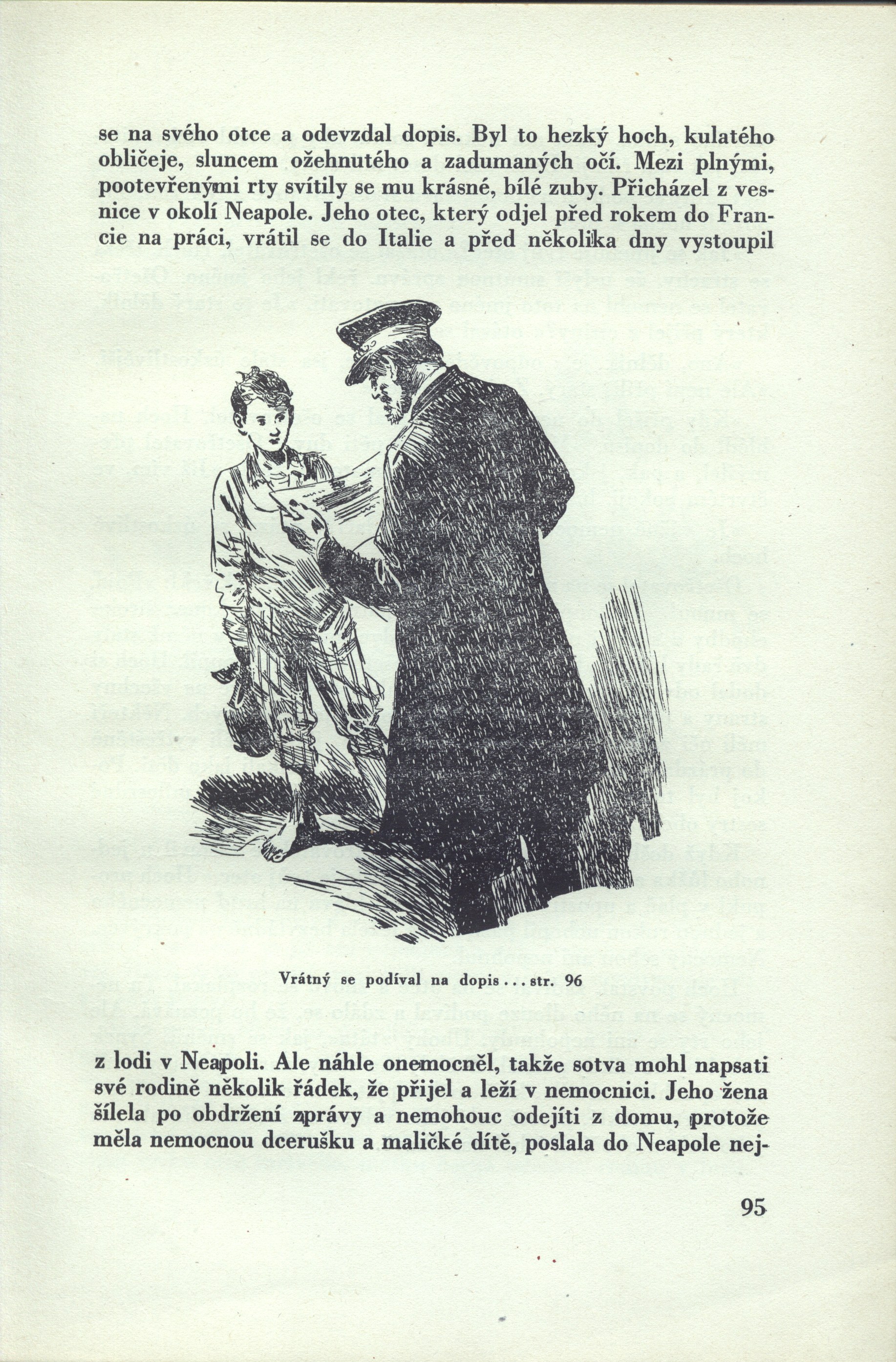 Druh dok. monografie Osobní hesla De Amicis, Edmondo, 1846-1908 - italský prozaik, básník, novinář, autor cestopisných knih a příběhů pro mládež Klíčová slova italská literatura * próza * překlad * román * literatura pro děti a mládež * ilustrované knihy MDT 821.131.1 * =030 * 82-3 * 82-31 * 82-93 * (084.1) Uživatelské pole PNP U sign. M. Novák 020 (vázaný výtisk) obálka s barevnou ilustrací (F. Horník - neuvedeno) na tenkém hlazeném papíru. - Poloplátěná vazba s hnědou ražbou (ilustrace M. Novák) na papírovém polepu; hřbet hnědo-červený s hnědou ražbou textu. - Patitul. - Titulní list s ilustrací (M. Novák). - Předmluva překladatele. - Černobílé ilustrace (M. Novák) v textu. - Vysvětlivky. - Obsah. - Bez tiráže. U sign. M. Novák 020 obálka v krajích narušená, podlepovaná a na zadní straně zašpiněná. Tiskárna neuvedena. Rozsah: 241, [3] s. Rozměr: 24,4 cm Signatura Přír.číslo Lokace Info MNovák 020 3301/2013 Sbírka