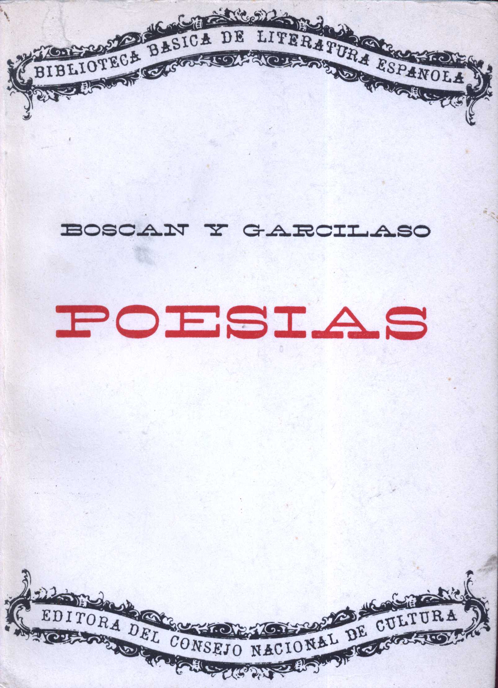 Názvové údaje Poesias / Boscan y Garcilaso ; con las anotaciones de Fernando de Herrera Osobní jméno Boscán, Juan, asi 1487-1542 (Autor) Další autoři Garcilaso de la Vega, 1501-1536 (Autor) Herrera, Fernando de, 1534-1597 (Autor úvodu atd.) Nakladatel Habana : Consejo nacional de cultura, 1963 Rozsah 388 s. ISBN brož. Edice Biblioteca Basica de literatura Española