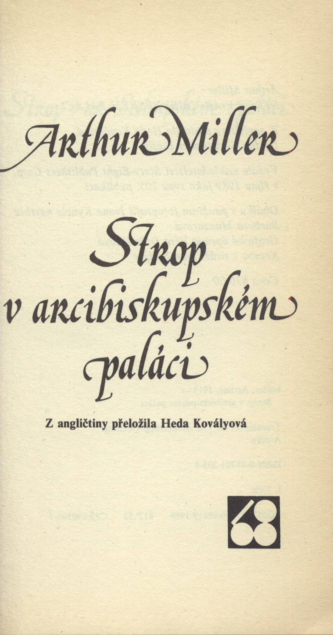 Názvové údaje Strop v arcibiskupském paláci / Arthur Miller ; z angličtiny přeložila Heda Kovályová ; [doslov Christopher Bigsby ; obálku s použitím fotografií Ivana Kyncla navrhla Barbora Munzarová ; grafická úprava Věra Držmíšková ; kresba v tiráži Ivan Steiger] Osobní jméno Miller, Arthur, 1915-2005 (Autor) Další autoři Kovályová, Heda, 1919-2010 (Překladatel) Bigsby, C. W. E., 1941- (Autor úvodu atd.) Munzarová, Barbora (Autor obálky) Kyncl, Ivan, 1953-2004 (Fotograf) Držmíšková, Věra, 1933-2025 (Knižní grafik) Korp. Sixty-Eight Publishers (exilové nakladatelství) (Nakladatel, vydavatel) Nakladatel Toronto : Sixty-Eight Publishers Corp., 1989 Rozsah 102 s. ; 18 cm ISBN 0-88781-205-8 (brož.) Země vyd. Kanada Jazyk dok. čeština Jazyk orig. angličtina Poznámky Fotoobálka. - Titulní list, na rubu nakladatelské údaje. - Doslov.
