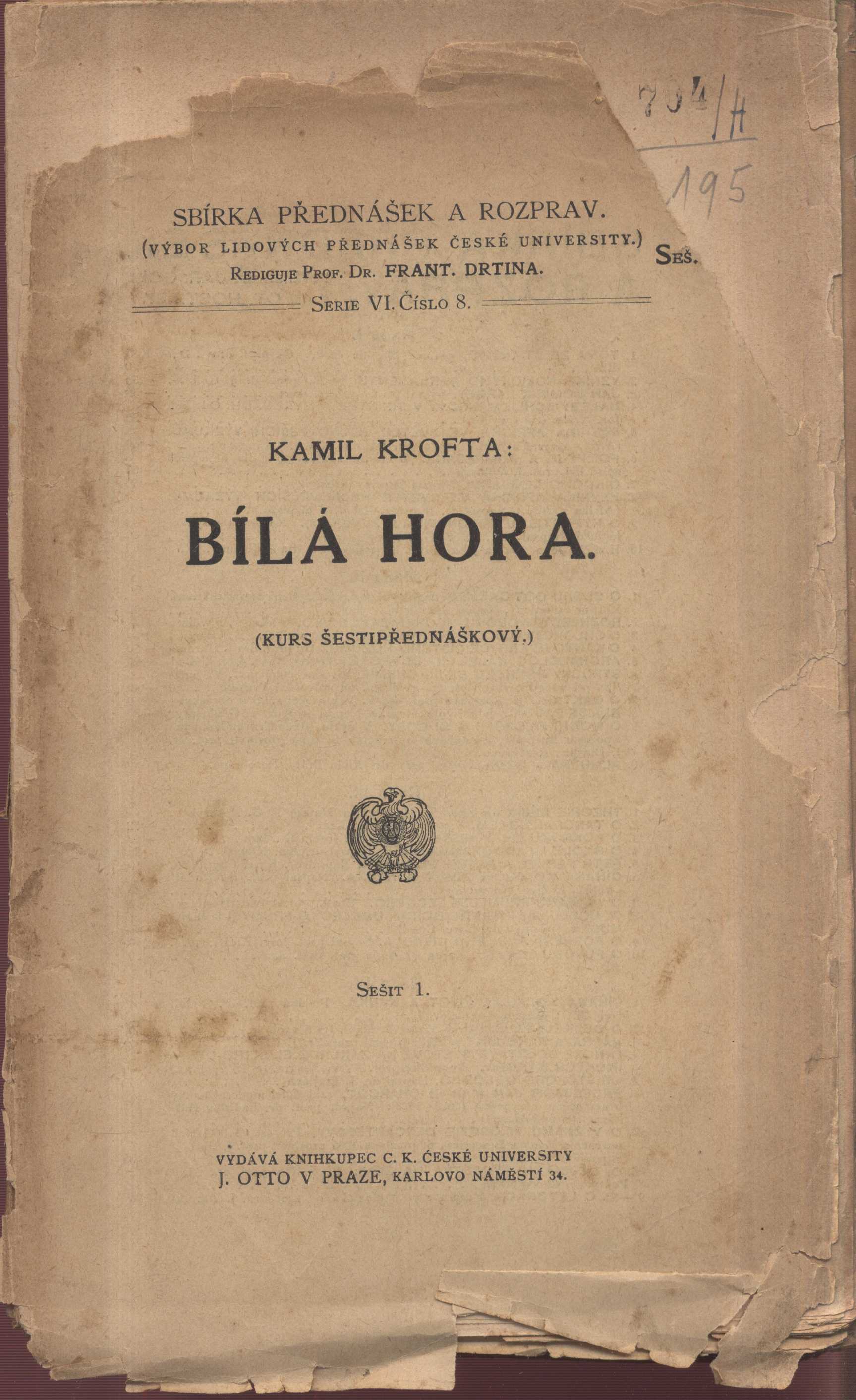 Názvové údaje Bílá hora : kurs šestipřednáškový / Kamil Krofta Osobní jméno Krofta, Kamil, 1876-1945 (Autor) Další autoři Nakladatelství Jan Otto (Nakladatel, vydavatel) Nakladatel V Praze : J. Otto, [19--] Rozsah 270 s. ISBN brož. Edice Sbírka přednášek a rozprav. serie 6 č. 8