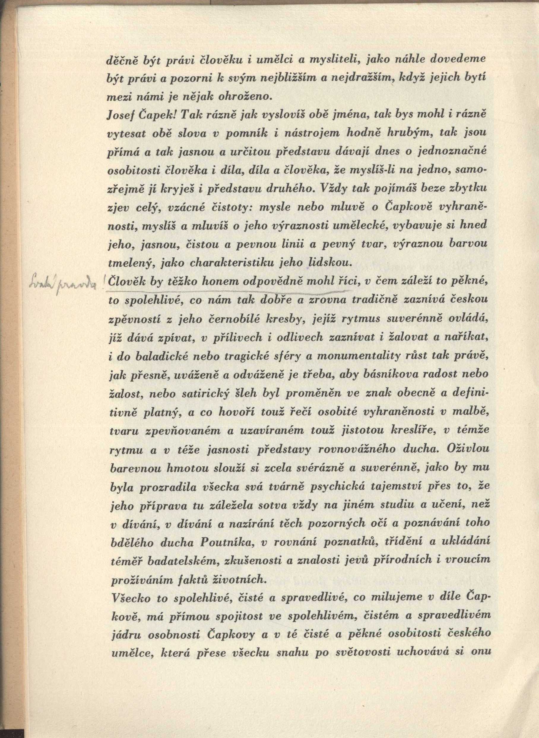 In memoriam Josefa Čapka, přítele, druha a člena výtvarného odboru Umělecké besedy