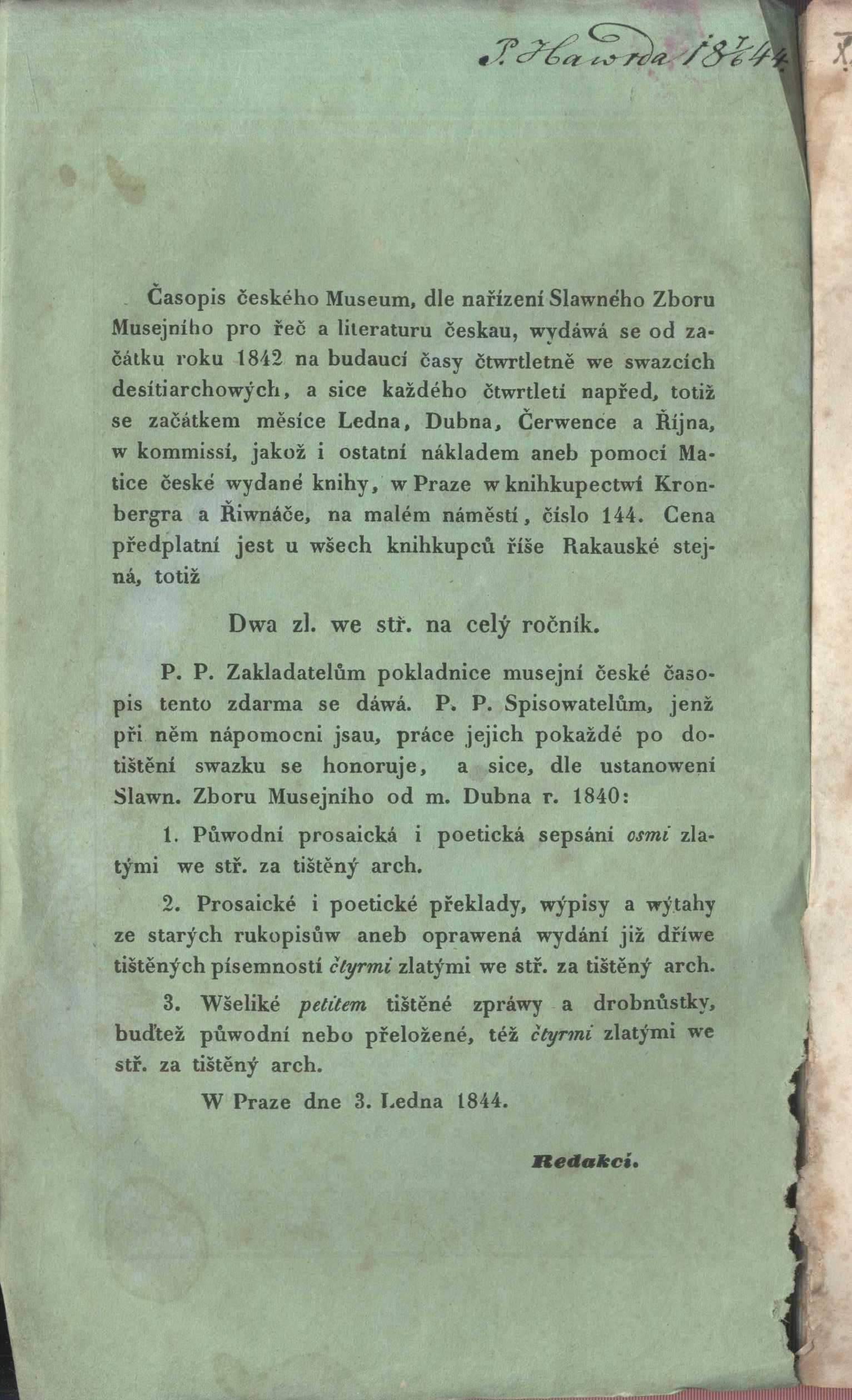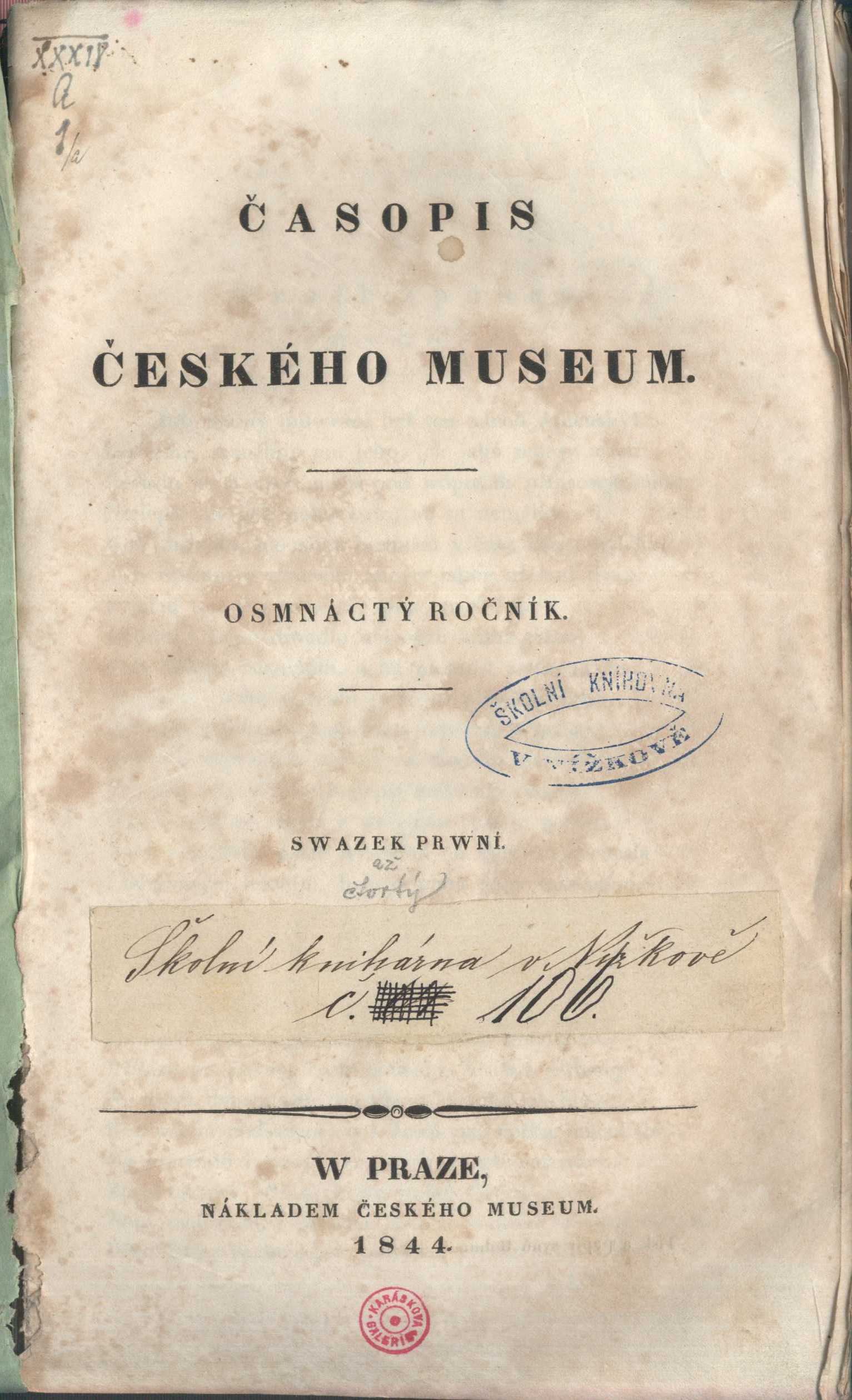Názvové údaje Časopis českého museum Další autoři Vocel, Jan Erazim, 1802-1871 (Redaktor, výkonný redaktor) Havrda, Adolf (Dřívější majitel) (Autor podpisu) Korp. České museum (Praha, Česko) (Nakladatel, vydavatel) Bohumil Haase a synové (tiskárna, nakladatelství, knihkupectví) (Tiskař) Školní knihovna v Nížkově (knihovna) (Dřívější majitel) Roč., číslo Ročník 18, svazek 1-4, 1844 Nakladatel W Praze : nákladem Českého museum., 1844 Výrobce Tisk a papír synů Bohumila Háze Rozsah 640 stran Země vyd. Česko Jazyk dok. čeština Poznámky Identicky zdobená obálka každého čísla. - V čísle 2 samostatně paginovaný Wýtah z aučtů Českého museum týkajících se příjmů a wydání Matice české roku 1843 (15 s.).