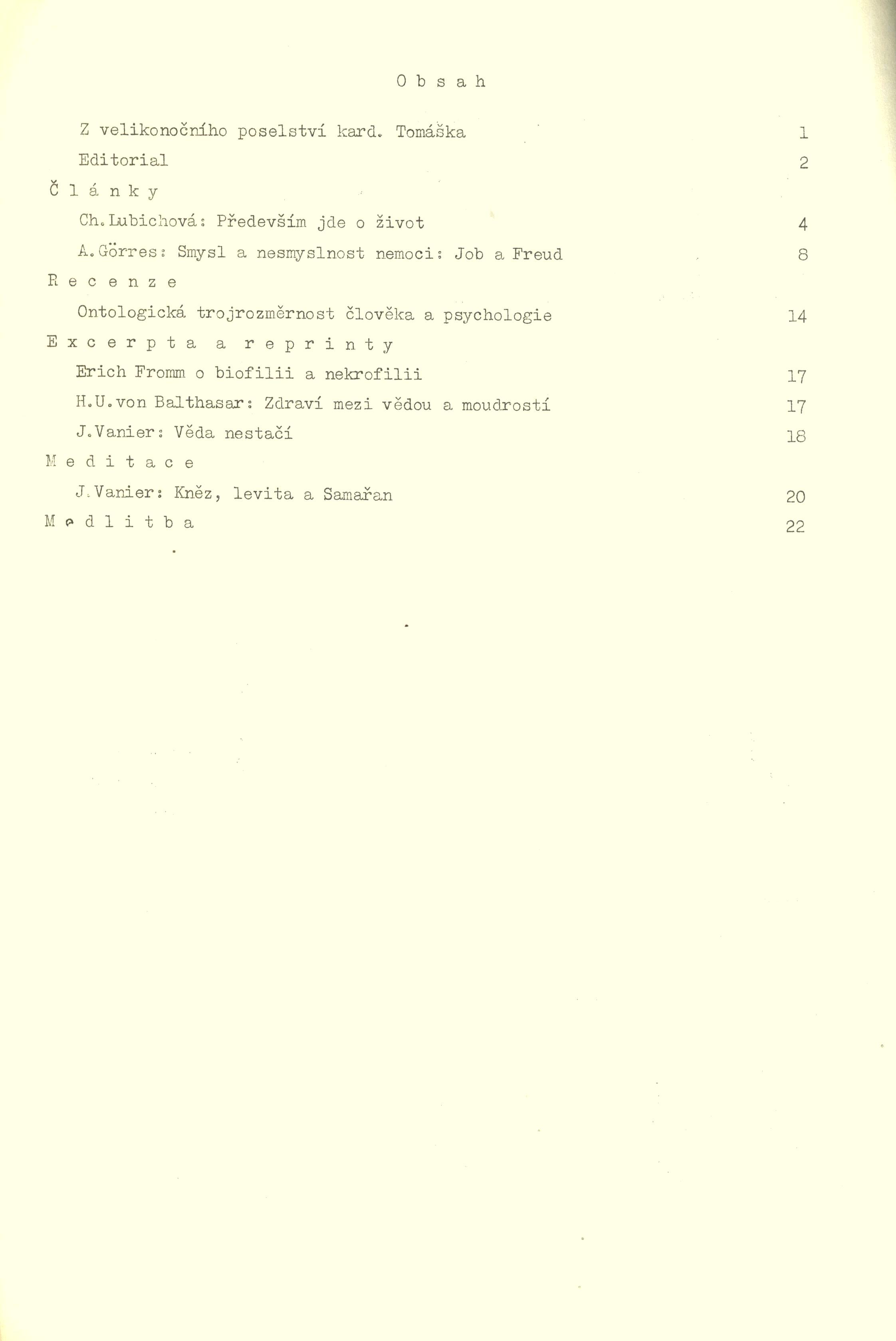 Druh dok. knihy Částečný obsah Obsahuje: Především jde o život/Ch. Lubichová; Smysl a nesmyslnost nemoci: Job a Freud/A. Görres; Ontologická trojrozměrnost člověka a psychologie; O biofilii a nekrofilii/E. Fromm; Zdraví mezi vědou a moudrostí/H.U. von Balthasar; Věda nestačí/ J. Vanier; Kněz, levita a Samařan/J. Vanier. Klíčová slova samizdatová literatura * sborník * křesťanství * služby * pomoc * odpovědnost * duchovní obnova * články * recenze * excerpta * reprinty * meditace * modlitby MDT 27-534.35 * 27-583 * 82.07 * 005.583.3 * 27 Uživatelské pole PNP Složka obsahuje sign. C12d 2072, 2073, 2074, 2075, 2076. Sbírka samizdatů Petra Příhody. Signatura Přír.číslo Lokace Info C12d 2073 2559/2015 Sbírka