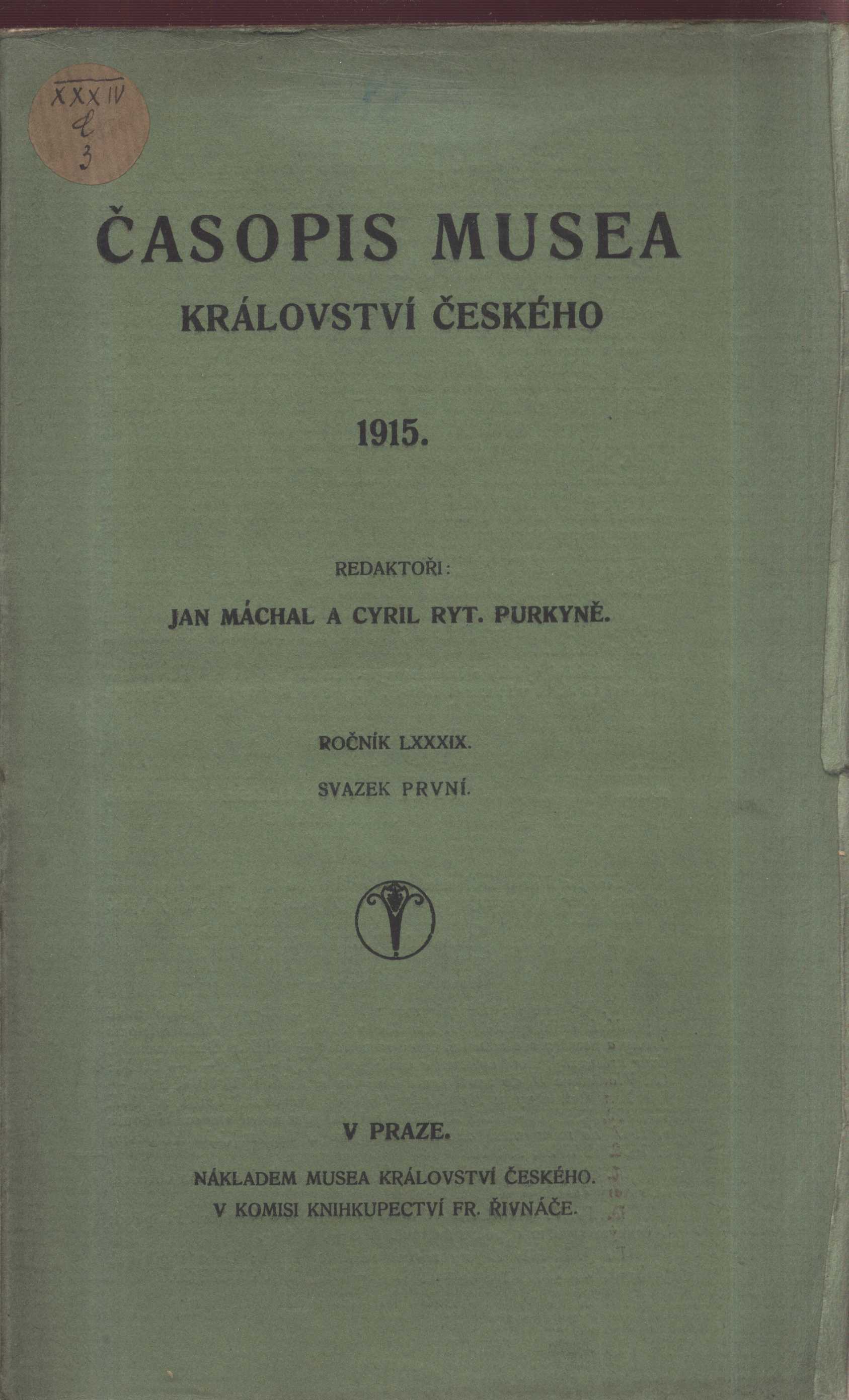 Názvové údaje Časopis Musea Království českého Další autoři Máchal, Jan, 1864-1924 (Redaktor, výkonný redaktor) Purkyně, Cyrill, 1862-1937 (Redaktor, výkonný redaktor) Korp. České museum (Praha, Česko) (Nakladatel, vydavatel) Pražská akciová tiskárna (Nakladatel, vydavatel) Roč., číslo Ročník 89, svazek 1-4, 1915 Nakladatel V Praze : nákladem Musea Království českého, 1915 Výrobce Pražská akciová tiskárna Rozsah 476 stran : ilustrace Země vyd. Česko Jazyk dok. čeština Poznámky Identická obálka každého čísla. - Ojedinělá černobílá ilustrace