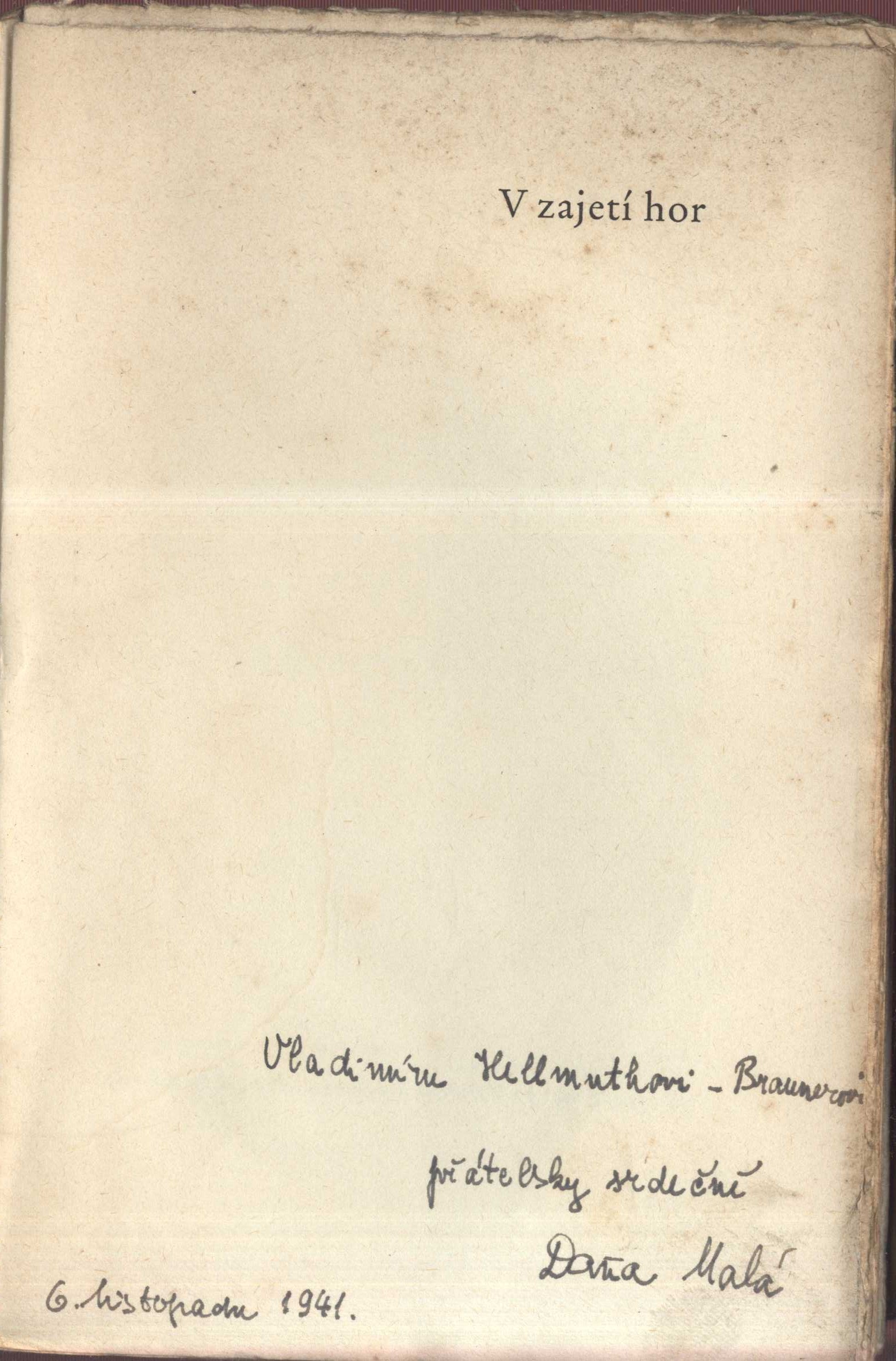 Názvové údaje V zajetí hor : tragický život G. Segantiniho / Raffaele Calzini ; [z italštiny přeložila Bohdana Malá] Osobní jméno Calzini, Raffaele, 1885-1953 (Autor) Další autoři Malá, Bohdana, 1918- (Překladatel) (Dedikátor) Hellmuth-Brauner, Vladimír, 1910-1982 (Dřívější majitel) (Dedikant) Korp. Vyšehrad (nakladatelství) (Nakladatel, vydavatel) Č.A.T., Českomoravské akciové tiskařské a vydavatelské podniky (Praha) (Tiskař) Nakladatel V Praze : Vyšehrad, 1941 Výrobce (Č.A.T., Českomoravské akciové tiskařské a vydavatelské podniky) Rozsah 399 s., [4] l. obr. příl. : il. ISBN brož. Země vyd. Česko Jazyk dok. čeština Jazyk orig. italština Poznámky Zdobená obálka. - Na záložkách obálky anotace knihy a ohlasy na další knihy Vyšehradu. - Nakladatelský signet. - Nakladatelská reklama. - Červený a černý tisk titulního listu. - Poznámky k překladu. - Čtyři listy obrazové přílohy s černobílými reprodukcemi děl G. Segantiniho.