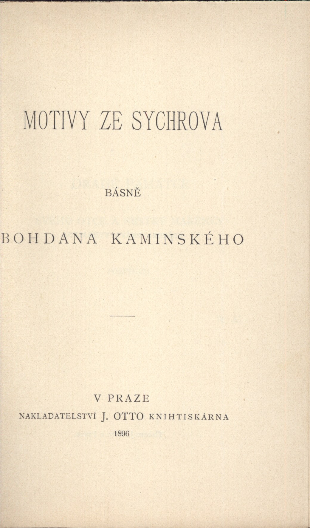Názvové údaje Motivy ze Sychrova / básně Bohdana Kaminského Osobní jméno Kaminský, Bohdan, 1859-1929 (Autor) Další autoři Olíva, Viktor, 1861-1928 (Ilustrátor) Korp. J. Otto (nakladatelství) (Nakladatel, vydavatel) J. Otto (knihtiskárna) (Tiskař) Nakladatel V Praze : Nakladatelství J. Otto knihtiskárna, 1896 Výrobce (tiskem J. Otty) Rozsah 81 s. ; 15 cm ISBN (Brož.) Země vyd. Česko Jazyk dok. čeština Poznámky Dvoubarevná obálka s ilustrací. - Titulní list. - Tiskárna. - Iniciály. - Obsah. - Nakladatelské upoutávky tištěné i na přídeští a zadní straně obálky.