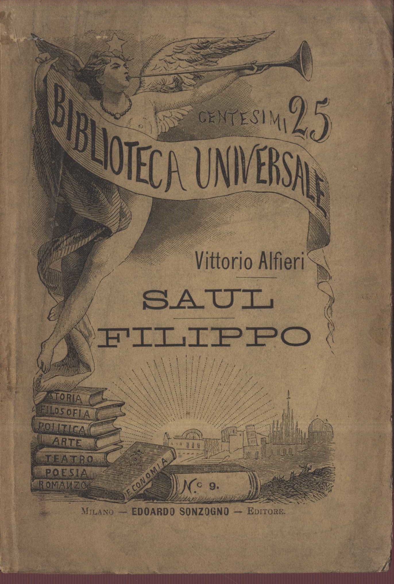 Title information Saul ; Filippo : tragedie / di Vittorio Alfieri Personal name Alfieri, Vittorio, 1749-1803 (Author) Další autoři Sonzogno, Edoardo, 1836-1920 (Publisher) Publication Milano : Edoardo Sonzogno, 1882 Scope 98 stran ISBN (brožováno) Edition Biblioteca universale No 9