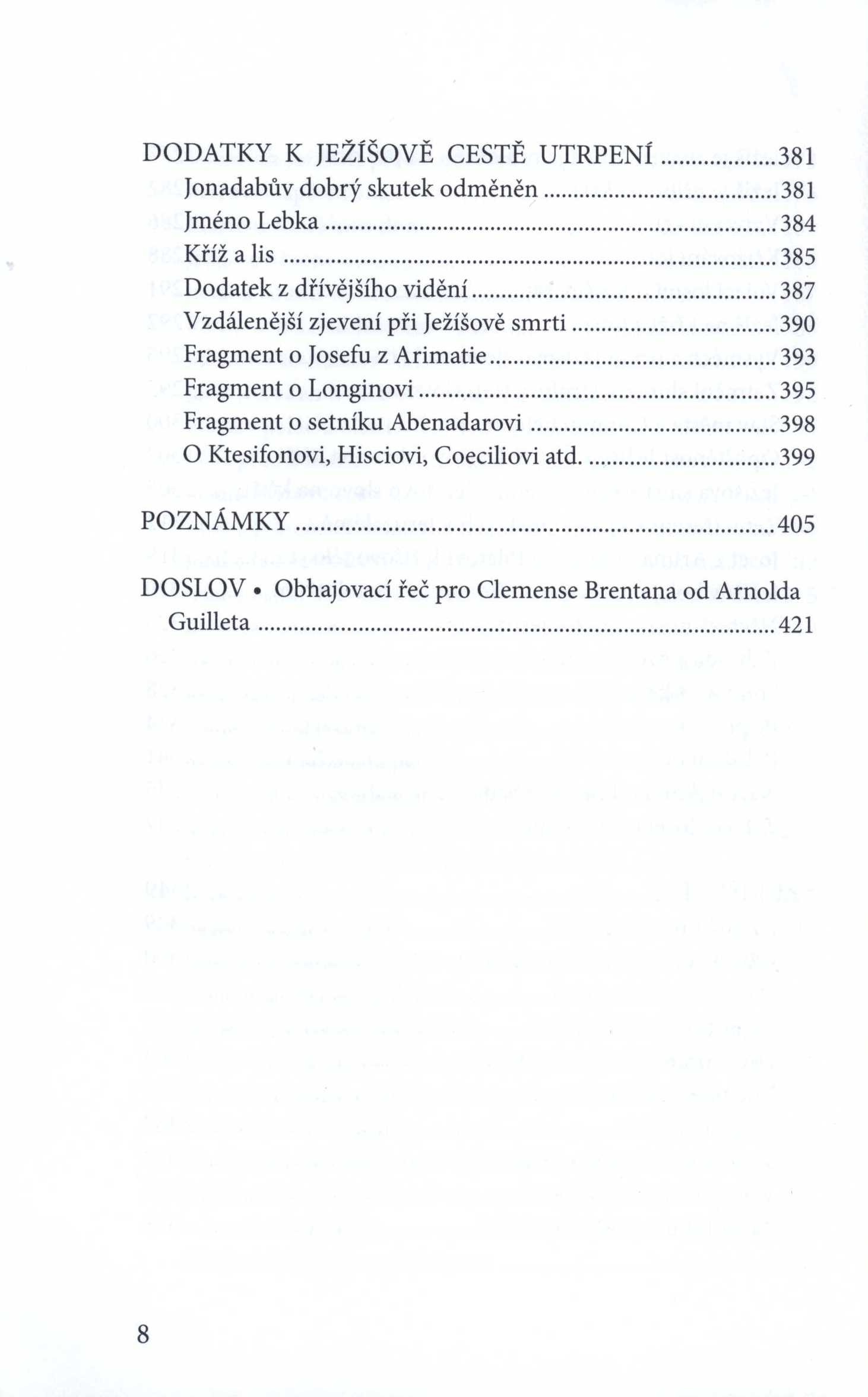 Názvové údaje Hořké umučení Pána našeho Ježíše Krista : podle vidění augustiniánky z Dülmenu / Anna Kateřina Emmerichová ; zapsal a nástinem života této omilostněné řeholnice doplnil Clemens Brentano ; doslov Arnold Guillet ; z němčiny přeložil Petr Janšta Osobní jméno Emmerich, Anna Katharina, 1774-1824 (Autor) Další autoři Brentano, Clemens, 1778-1842 (Autor) Doré, Gustave, 1832-1883 (Ilustrátor) Korp. Matice cyrilometodějská (nakladatelství : 1993-) (Nakladatel, vydavatel) (Tiskař) Údaje o vydání V MCM vydání první Nakladatel Olomouc : Matice cyrilometodějská, 2013 Rozsah 429 stran : ilustrace ; 21 cm ISBN 978-80-7266-383-5 (vázáno) Země vyd. Česko Jazyk dok. čeština Jazyk orig. němčina Poznámky Zdobená barevná vazba. - Na zadní straně vazby poznámka o autorce. - Frontispis. - Černobílé ilustrace. - Poznámky.