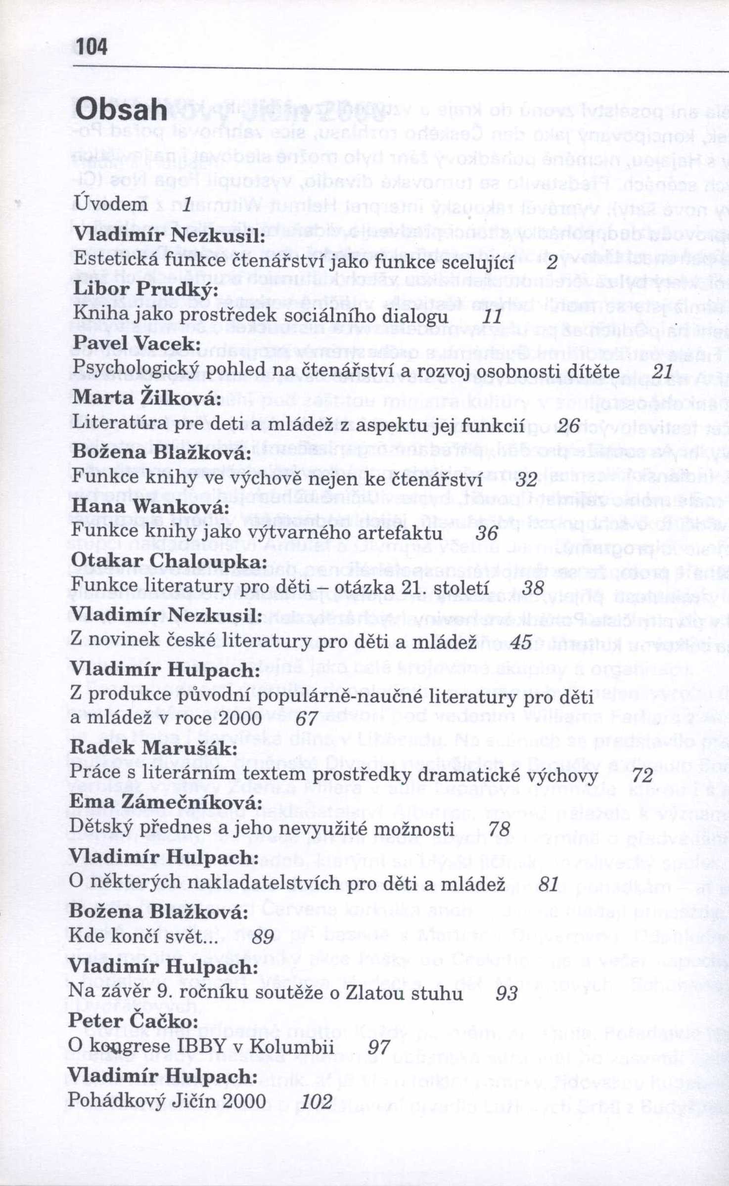 Klíčová slova literatura pro děti a mládež * dětská kniha * r. 2000 * sborníky
