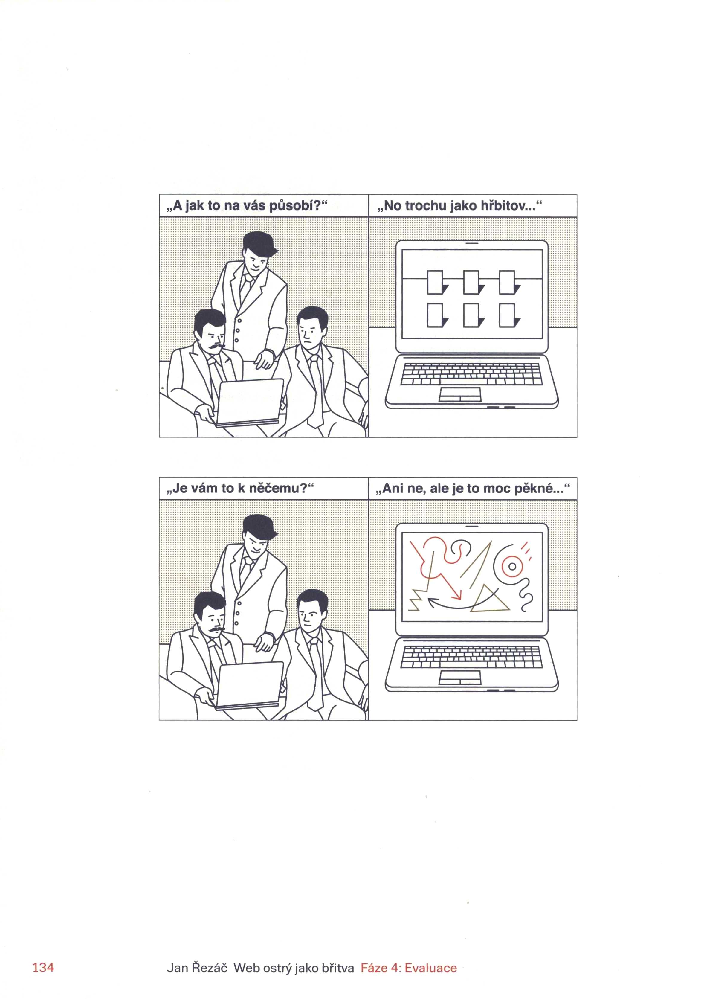 Poznámka o dalších původcích Editace: Jana Volencová Anotace Kniha o procesu návrhu webu (webdesignu), kterou napsal Jan Řezáč, český konzultant webů, lektor a zakladatel agentury House of Řezáč. První vydání knihy vyšlo v roce 2014 v nákladu 3000 kusů a bylo zcela rozebráno během 15 měsíců. Druhého vydání se kniha dočkala v roce 2016. Zabývá se návrhem webových prezentací, které prodávají produkty či služby, tedy návrhem firemních webů, internetových obchodů, microsites apod. V první části představuje úvod do oboru webdesignu (typy webových projektů, klíčové pojmy jako KPI, konverzní akce apod.), práce s poptávkou (cenotvorba, ukotvení projektu, nastavení očekávání) a také projektového řízení (definování jednotlivých rolí, technika WBS aj.). Hlavní část knihy je věnována procesu návrhu webu a jednotlivým fázím. Poslední kapitoly knihy se obrací spíše na dodavatele a webdesignery pro které zasazují návrh webu do širších souvislostí (Maslowova pyramida webdesignu). Druh dok. monografie Poznámky o skryté bibliografii a rejstřících Obsahuje bibliografii Předmětová hesla Internet marketing * web presentation * web design Klíčová slova česká literatura * příručka * web * internetový marketing * WWW prezentace * Nejkrásnější české knihy * r. 2014 MDT (035) * 821.162.3 Uživatelské pole PNP Nejkrásnější české knihy 2014 - Odborná literatura, užší výběr. Signatura Přír.číslo Lokace Info NK/14 036a 2475/2017 Sbírka NK/14 036b 2476/2017 Sbírka NK/14 036 1238/2023 Sbírka
