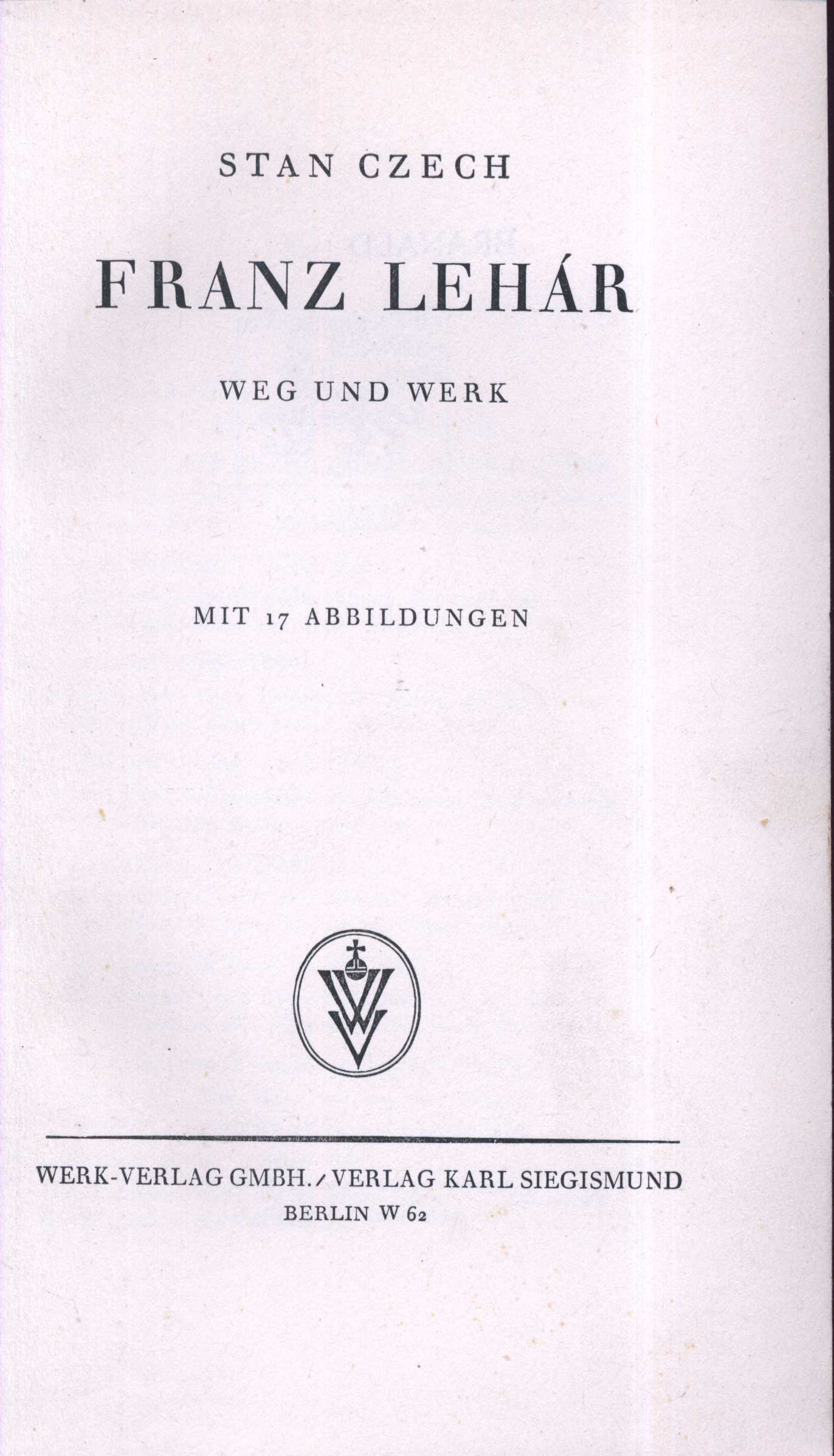 Názvové údaje Franz Lehár : Weg und Werk / Stan Czech Osobní jméno Czech, Stan Stany (Autor) Nakladatel Berlin : Wer-Verlag GMBH : Verlag Karl Siegismund, c1940 Výrobce Liepzig : C. G. Röder Rozsah 321 stran, 17 nečíslovaných obrazových příloh : noty ; 21 cm ISBN vázáno Země vyd. Německo Jazyk dok. němčina Poznámky Béžová plátěná vazba se štítkem na hřbetu knihy. - Zdobená přídeští a předsádky. - Frontispis s fotografií F. Lehára. - Černobílé fotografie na přílohách. - Noty. - Literatura