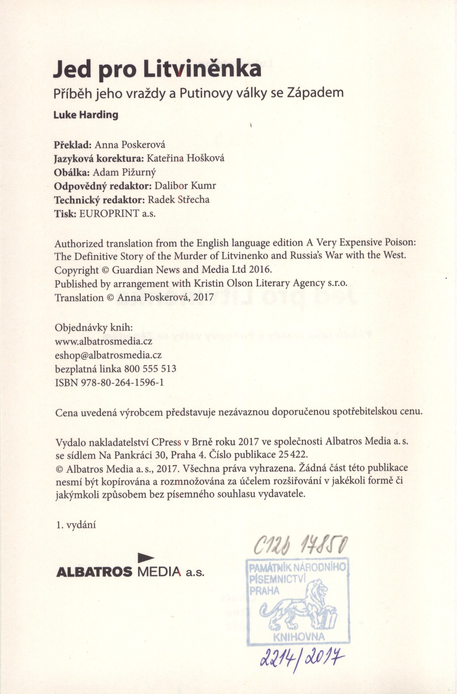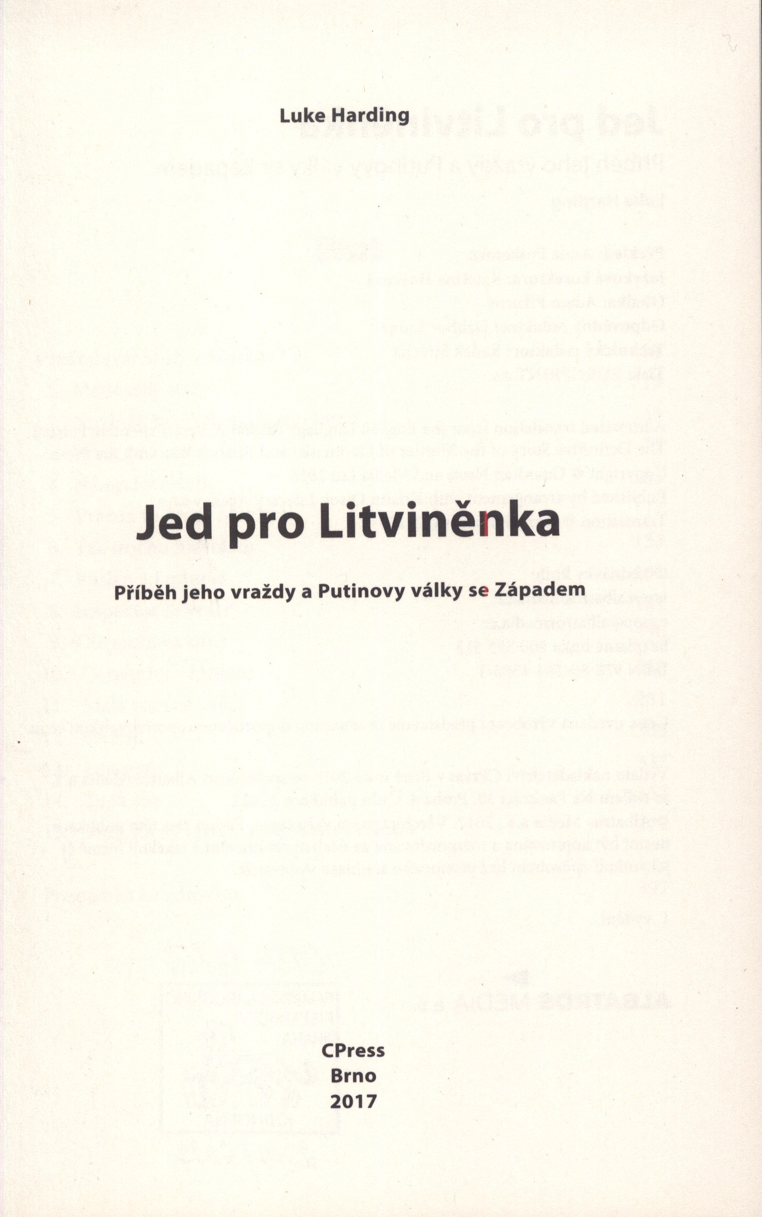 1. Názvové údajeJed pro Litviněnka : příběh jeho vraždy a Putinovy války se Západem / Luke Harding ; překlad: Anna Poskerová