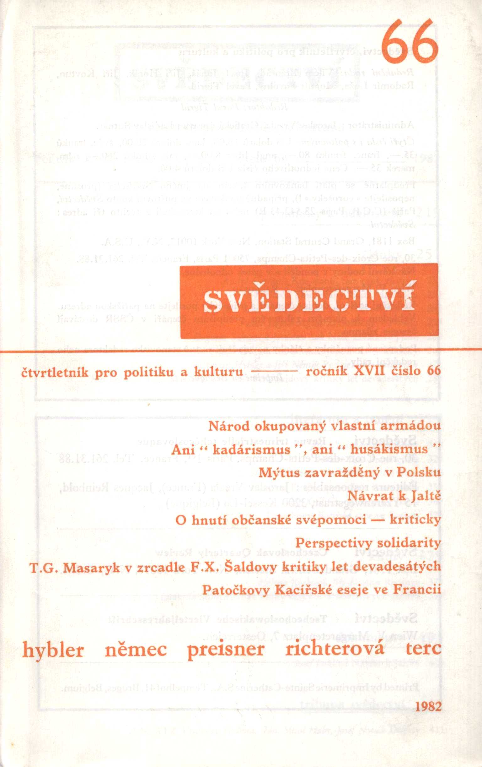 Názvové údaje Svědectví : čtvrtletník pro politiku a kulturu Další autoři Tigrid, Pavel, 1917-2003 (Editor) Sutnar, Ladislav, 1897-1976 (Knižní grafik) Roč., číslo Ročník 17, číslo 66, 1982 Nakladatel Paris ; New York ; Wien : [Svědectví], 1982 Rozsah Strana 219-416 : ilustrace ; 21 cm ISSN 0039-6419 Země vyd. Francie * Spojené státy americké * Rakousko Jazyk dok. čeština Poznámky Čb. ilustrace