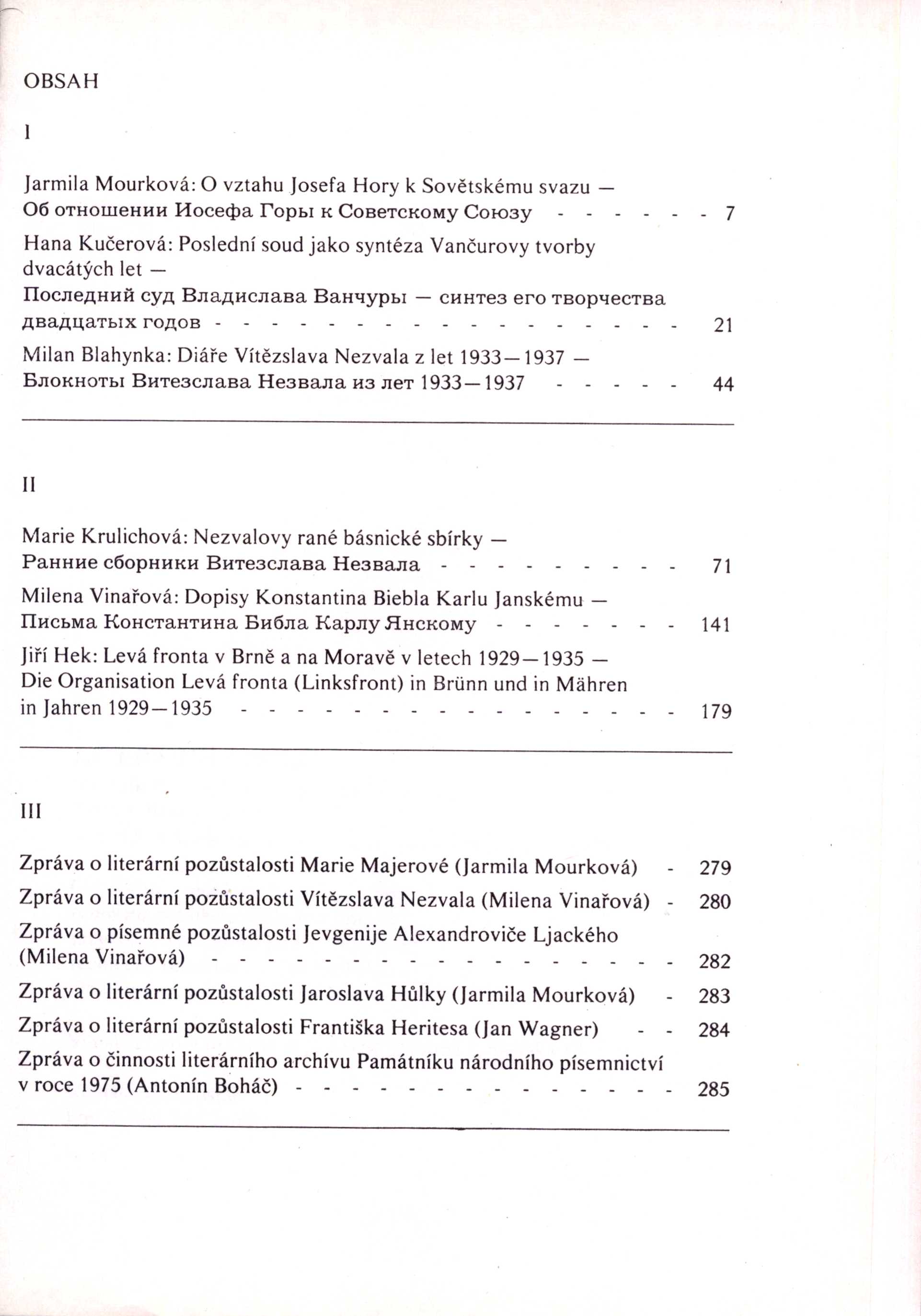 Druh dok. PERIODIKA - Svázaný ročník periodika Souběž.n. Sbornik Muzeja češskoj pis'mennosti Jahrbuch des Museums des tschechischen Schrifttums Annual of the Museum of the Czech Literature Mémoires du Musée de la Littérature Tchèque Poznámky o skryté bibliografii a rejstřících Obsahuje bibliografické odkazy. - Zpráva o činnosti literárního archivu Památníku národního písemnictví v roce 1975 na str. 285-287 Nadřízená jednotka Literární archív Osobní hesla Hora, Josef, 1891-1945 - básník, prozaik, literární kritik, překladatel, publicista * Vančura, Vladislav, 1891-1942 - spisovatel, publicista, filmový scénárista a režisér * Nezval, Vítězslav, 1900-1958 - básník, překladatel, prozaik, publicista * Biebl, Konstantin, 1898-1951 - básník a prozaik * Janský, Karel, 1890-1959 - bibliofil, překladatel * Majerová, Marie, 1882-1967 - spisovatelka, novinářka, překladatelka Klíčová slova česká literatura * čeští spisovatelé * čeští básníci * Památník národního písemnictví * literární archiv PNP * básně * korespondence * dopisy * literární pozůstalost * sborník MDT 821.162.3-051 * 82-1 * 82-6 * (044) * 82(091) * 821.162.3-055.2 * 821.162.3 * (066) Signatura Přír.číslo Lokace Info M 152 b 35a 3122/86 Sbírka M 152 b 35b 3123/86 Sbírka M 152 b 35c 3124/86 Sbírka M 150 b 47a 1623/84 Sbírka M 150 b 47b 1624/84 Sbírka M 150 b 47c 1625/84 Sbírka
