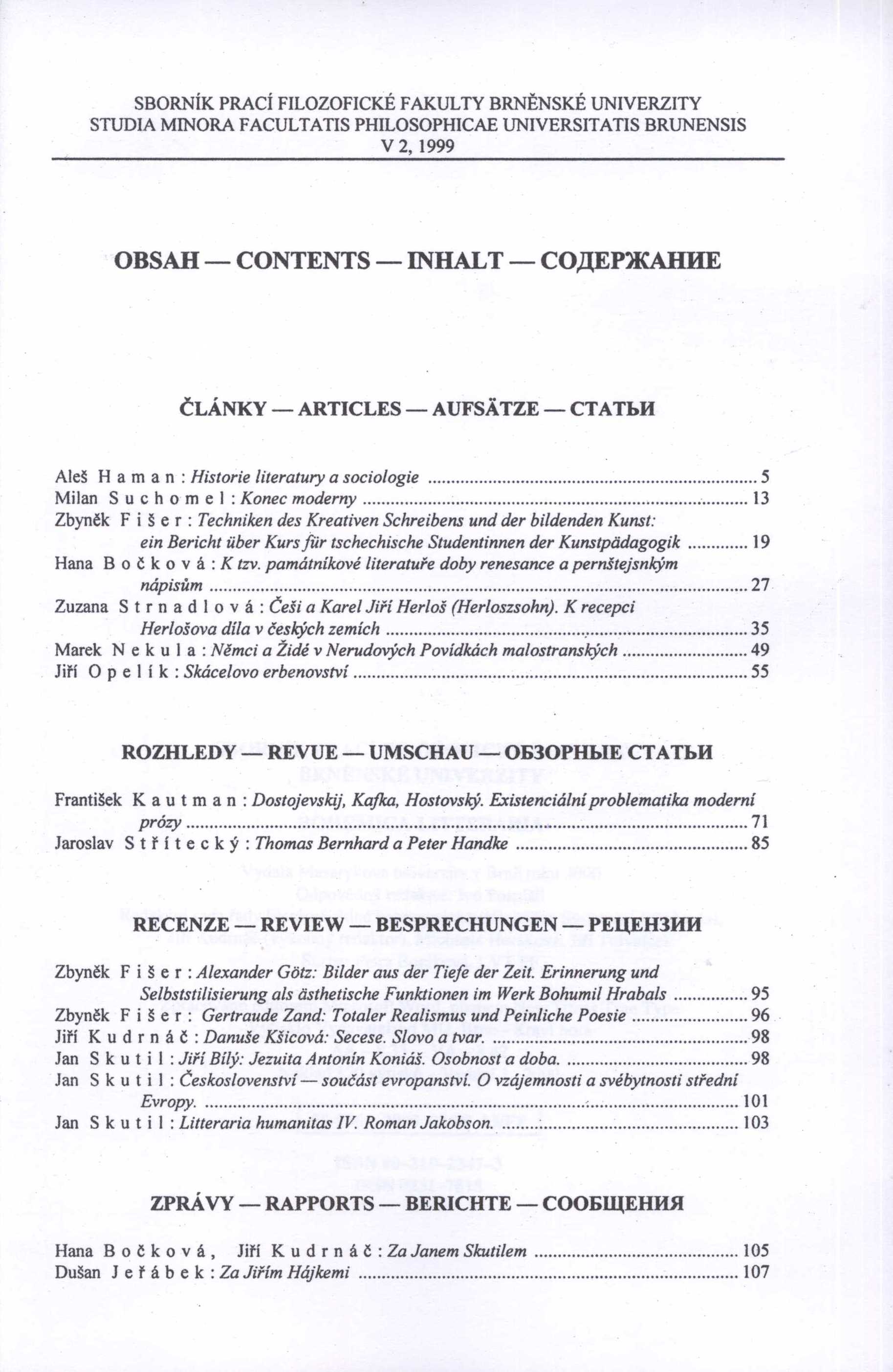 1. Názvové údajeSborník prací Filozofické fakulty brněnské univerzity. Řada literárněvědná bohemistická (V), Bohemica litteraria = Studia minora Facultatis philosophicae universitatis braunensis. Series Bohemica litteraria