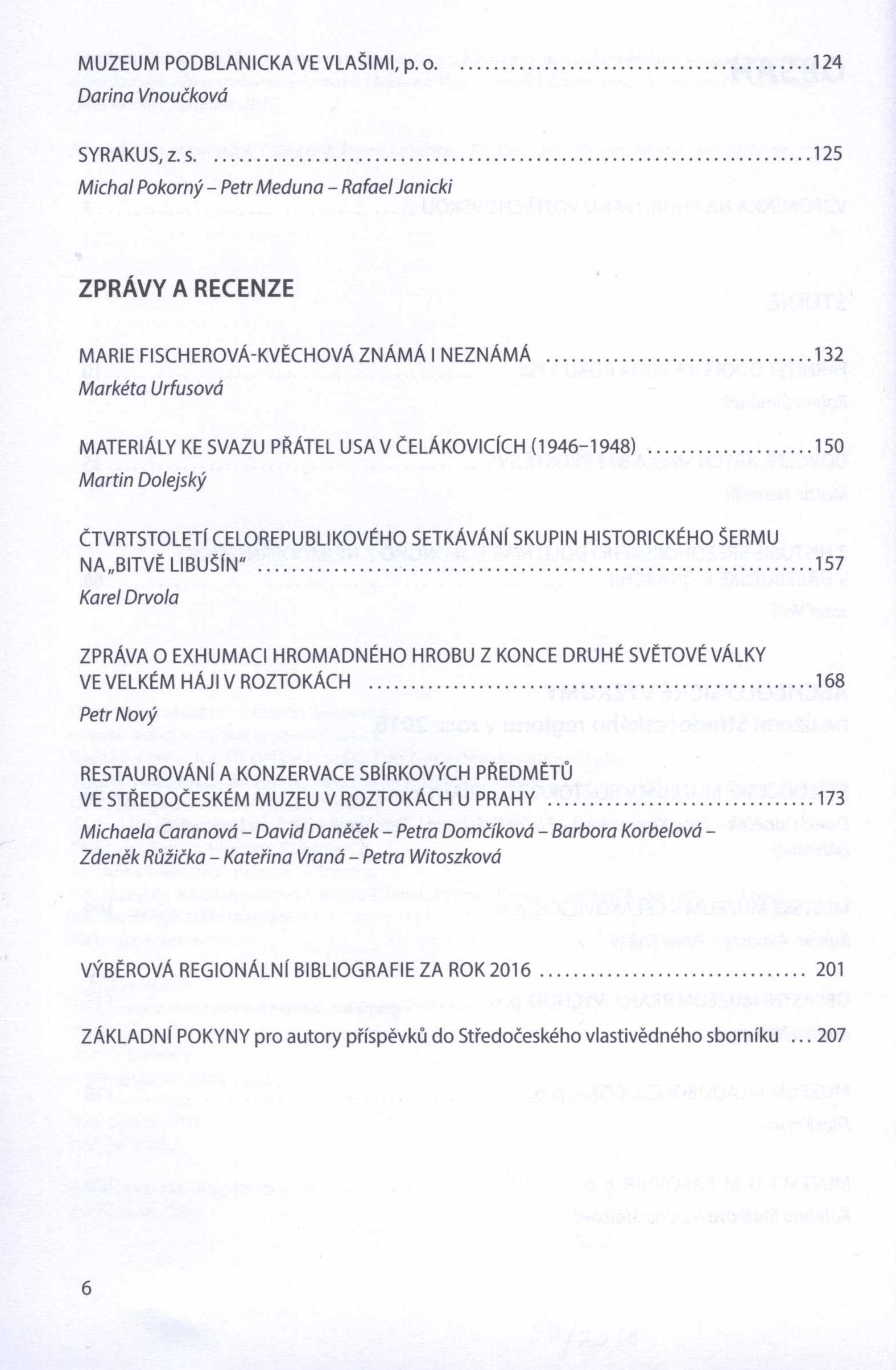 Poznámka o dalších původcích Odpovědný redaktor: Marcela Šášinková Grafická úprava, sazba: Anna Benešová Druh dok. PERIODIKA - Svázaný ročník periodika Název na hřbetu Muzeum a současnost Periodicita 1x ročně Poznámky o skryté bibliografii a rejstřících Obsahuje bibliografické odkazy a bibliografii. - Výběrová regionální bibliografie za rok 2016 na str. 201-205. Nadřízená jednotka Středočeský vlastivědný sborník Klíčová slova střední Čechy * historie kraje * archeologický výzkum * osobnosti kraje * vlastivěda kraje * r. 2017 * regionální sborník MDT 821.162.3-82 * 908.437.1 * 904 Signatura Přír.číslo Lokace Info C12b 17955 0050/2018 Fond
