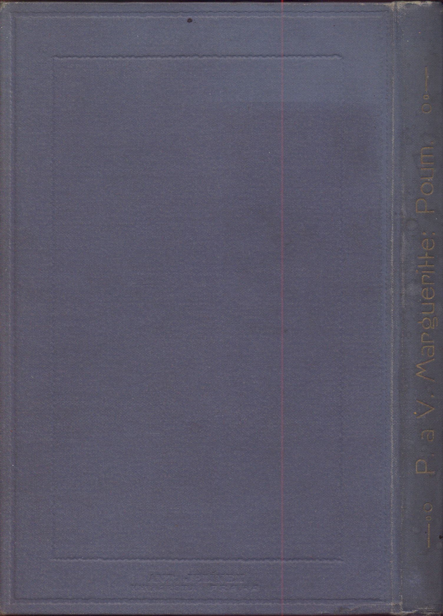 Druh dok. monografie Klíčová slova francouzská literatura * próza * literatura pro děti a mládež * Margueritte P a V. * překlad * Tuček A. * r. 1902 MDT 821.133.1 * 82-3 * 82-93 * =030 Uživatelské pole PNP Knihovna V. Zinkové U sign. VZinková 0044 (vázaný výtisk) šedomodré knihařské plátno s barevnou tlačenou ilustrací, stříbrné písmo, zlacený text na hřbetu. - Zdobené předsádky. - Vevázaná, barevnou ilustrací zdobená obálka, na rubu informace o autorovi návrhu vazby. - Proti titulu edice. - Na rubu titulního listu tiskárna. - Obsah. - Bez tiráže. - Nakladatelská upoutávka. - Ediční seznam. - Slepotiskem zdobená zadní strana vazby, rámečky, se jménem knihaře. U sign. VZinková 0044 zachovalý výtisk i vazba; podpis K. Zinka. Rozsah: [1] l. barev. obr. příl., 145, [3] s. Rozměr: 17,5 cm Signatura Přír.číslo Lokace Info VZinková 0044 1484/2018 Sbírka