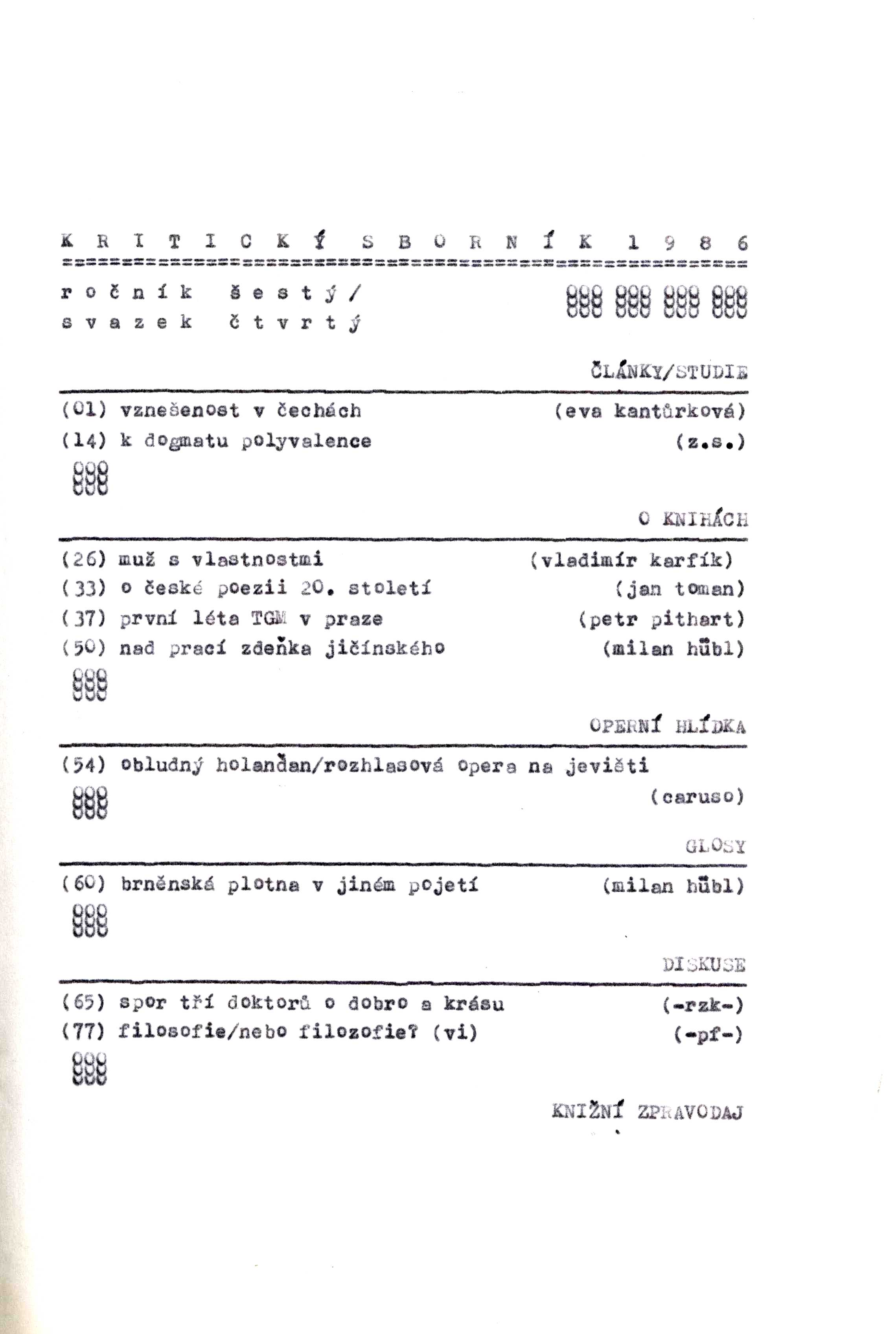 1, 2, 3, 4 + Obsahy Kritického sborníku 1981-1985