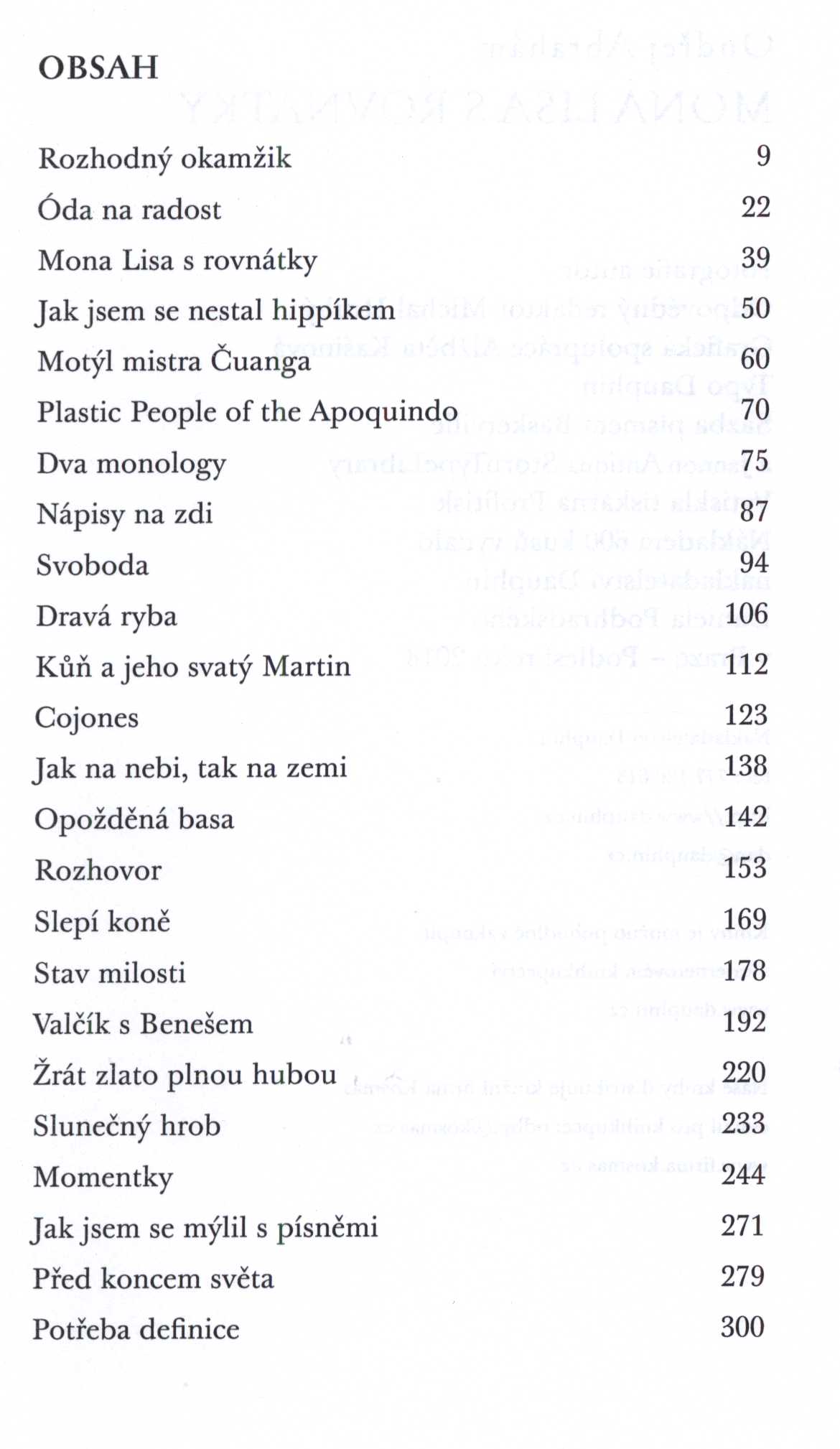 Názvové údaje Mona Lisa s rovnátky / Ondřej Abrahám ; fotografie autor ; grafická spolupráce Alžběta Kašinová Osobní jméno Abrahám, Ondřej, 1954-2025 (Autor) Další autoři Kašinová, Alžběta (Knižní grafik) Korp. Nakladatelství Dauphin (Nakladatel, vydavatel) Profitisk (tiskárna) (Tiskař) Nakladatel V Praze - Podlesí : Dauphin, 2018 Výrobce Profitisk Rozsah 308 stran : ilustrace ; 20 cm ISBN 978-80-7272-767-4 (brožováno) Země vyd. Česko Jazyk dok. čeština Poznámky Ilustrační fotografie na obálce. - Černobílé celostránkové ilustrační fotografie. - Na zadní straně obálky poznámka o knize a autorovi. - 600 výtisků.