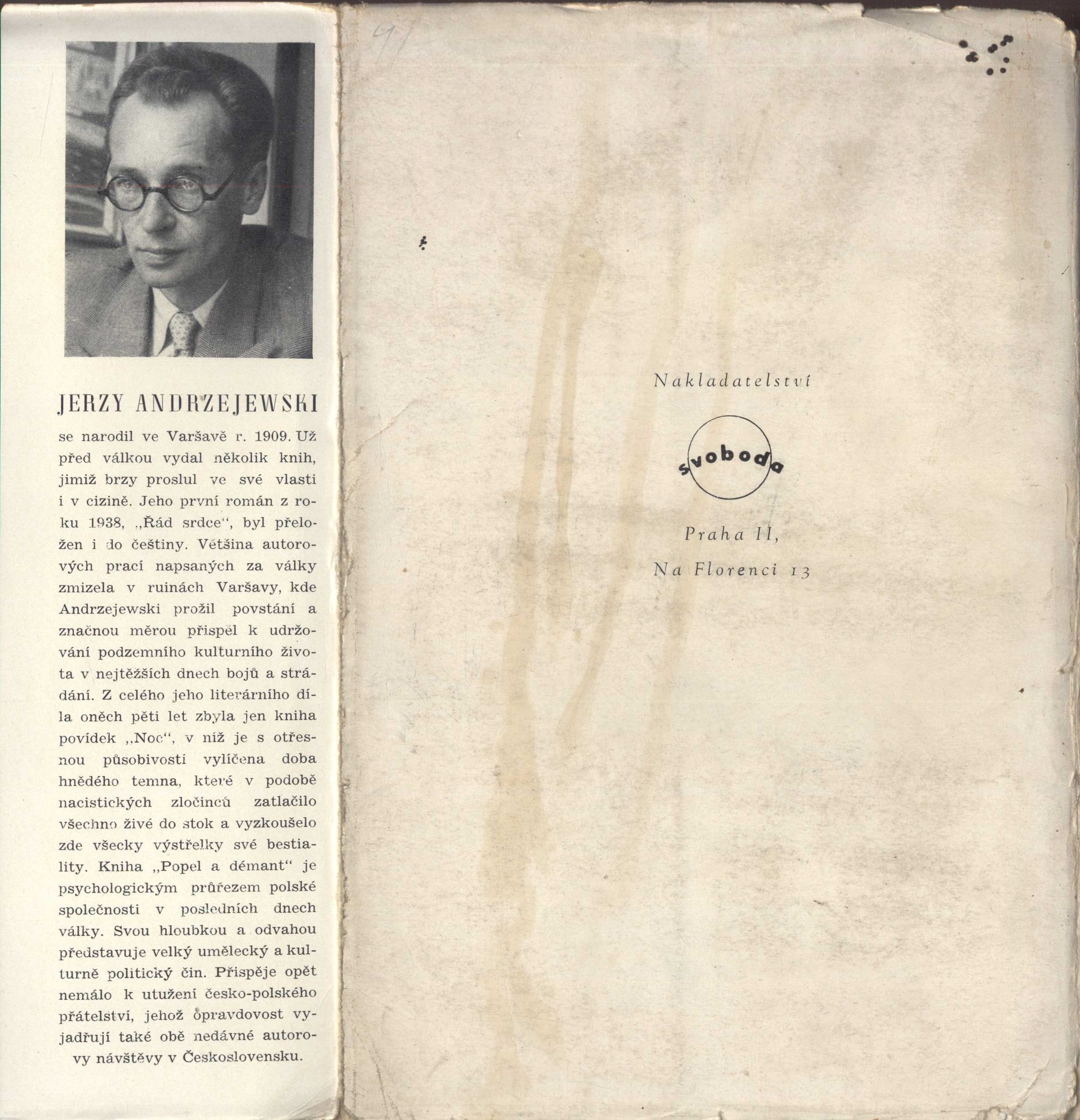 1. Názvové údajePopel a démant / Jerzy Andrzejewski ; z polského originálu Popiół i diament ... přeložila Helena Teigová