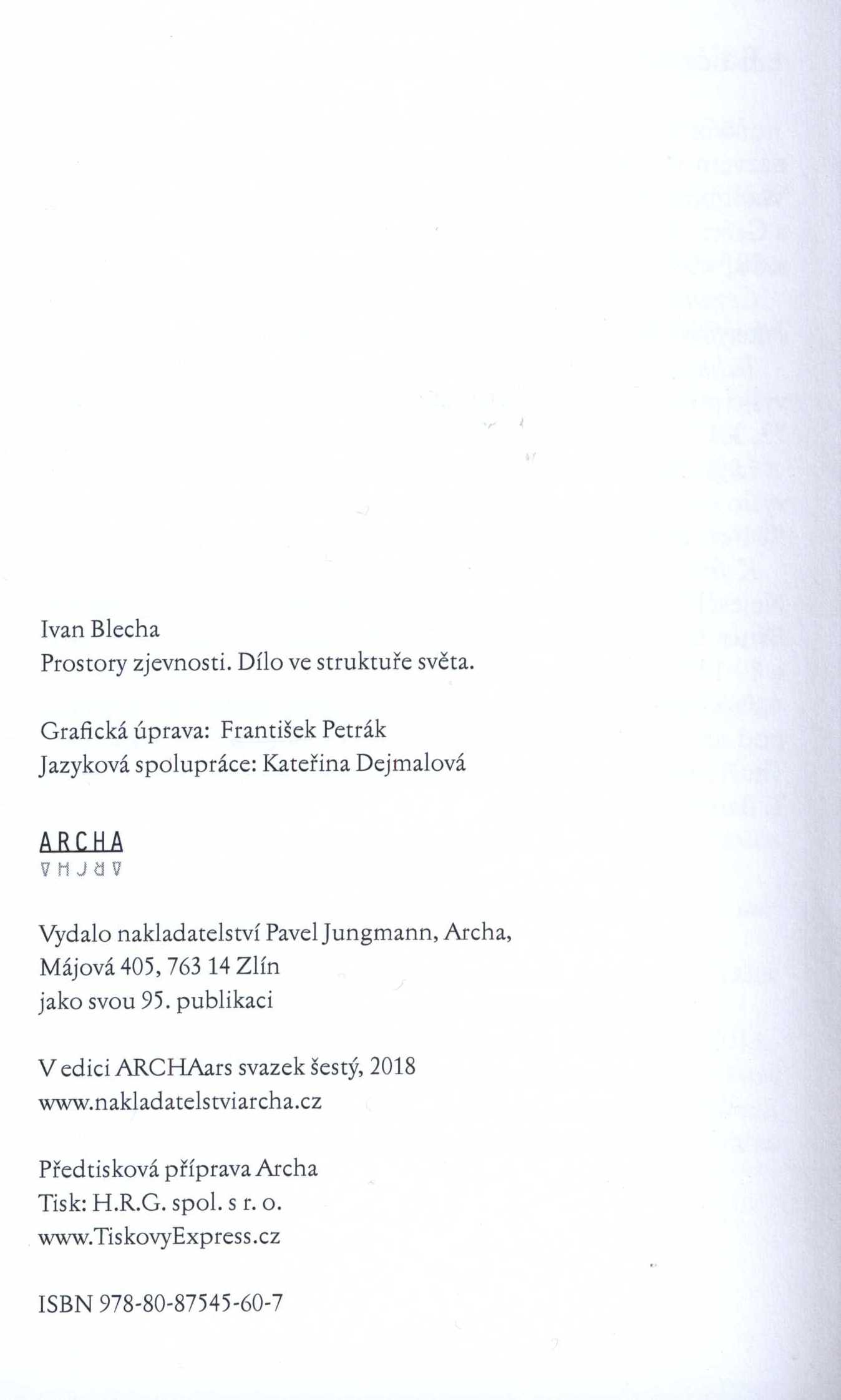 1. Názvové údajeProstory zjevnosti. Dílo ve struktuře světa / Ivan Blecha ; grafická úprava František Petrák