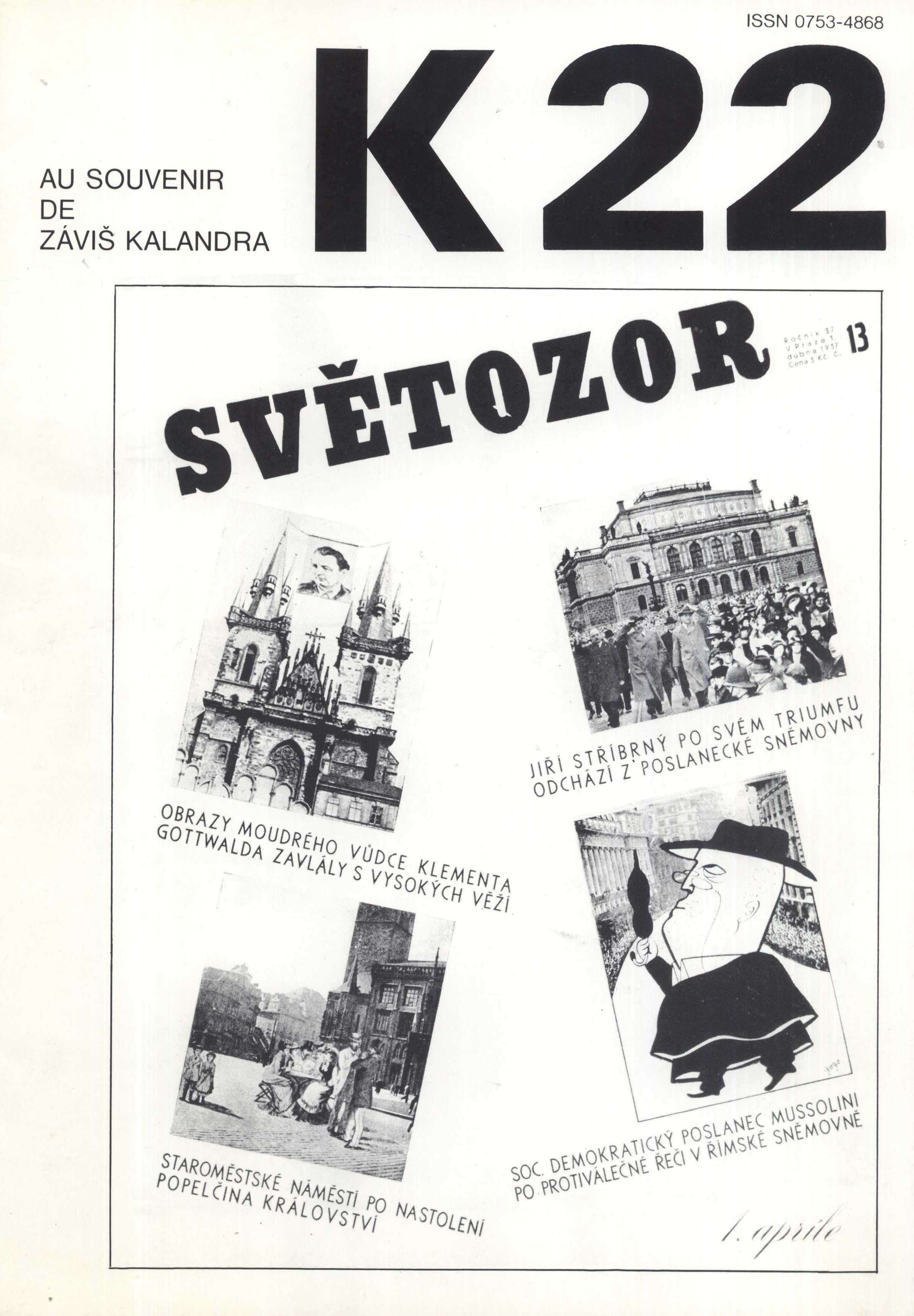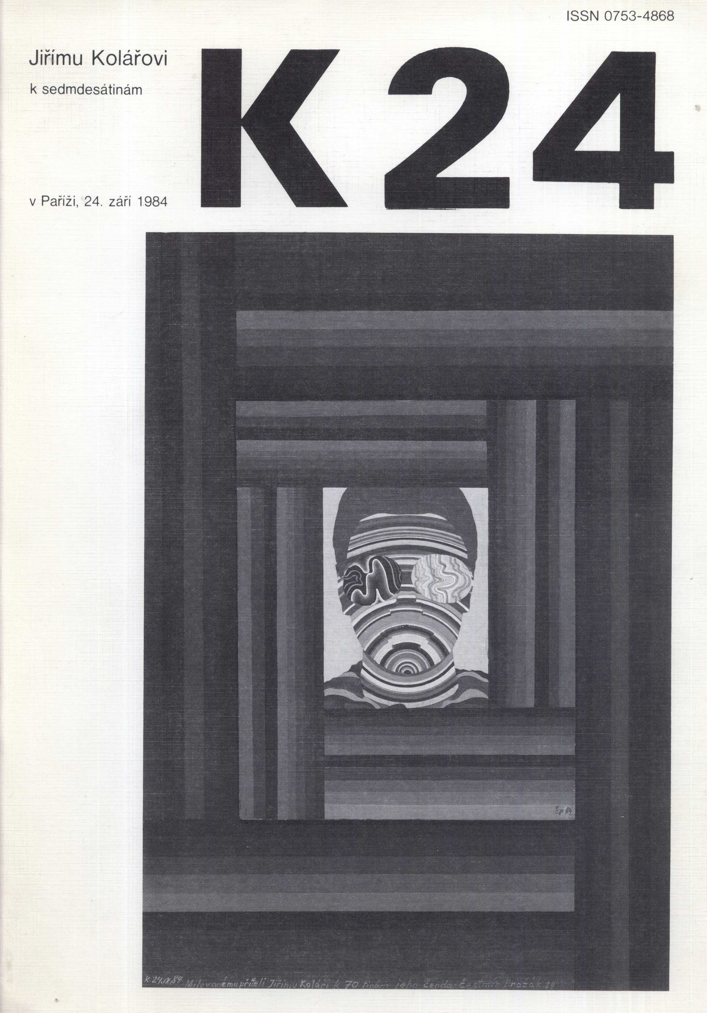 Názvové údaje Revue K Další autoři Kolář, Jiří, 1914-2002 (Šéfredaktor, odpovědný redaktor) Korp. Revue K (Nakladatel, vydavatel) Roč., číslo 22-25 + 1 příloha, 1986 Nakladatel Paříž : Revue K, 1986 Rozsah ilustrace, fotografie ; 30 cm ISSN 0753-4868 Země vyd. Francie Jazyk dok. francouzština * čeština Poznámky Čb. ilustrace a fotografie. - Částečně český text. - Číslo 24 věnované Jiřímu Kolářovi k sedmdesátinám.