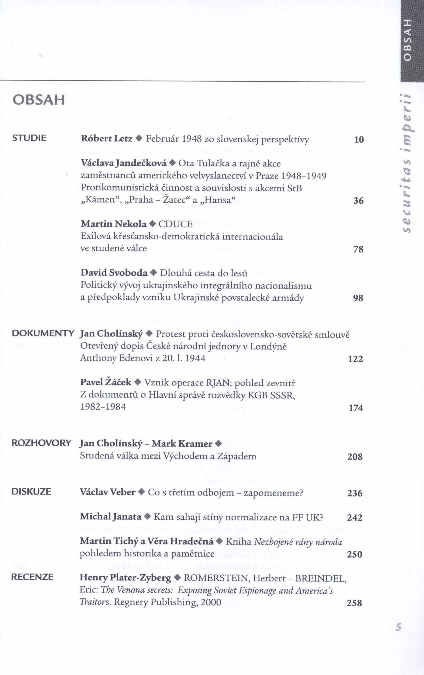Poznámka o dalších původcích Vedoucí redaktor Jan Cholínský Grafická úprava a sazba Jaroslav Ježek Druh dok. PERIODIKA - Přijatá čísla Periodicita 2x ročně Poznámky o skryté bibliografii a rejstřících Obsahuje bibliografické odkazy. - Informace o autorech Nadřízená jednotka Securitas imperii Klíčová slova Československo * SSSR * totalitní režimy * totalitarismus * politický vývoj * protikomunistický odboj * studená válka * ukrajinská povstalecká armáda * studie * recenze * rozhovory * sborník MDT 327.54 * 82-83 * (47+57) * (437) * 329.17 * (437.6) * 82.07 Signatura Přír.číslo Lokace Info LITc 0291 0940/2021 Fond