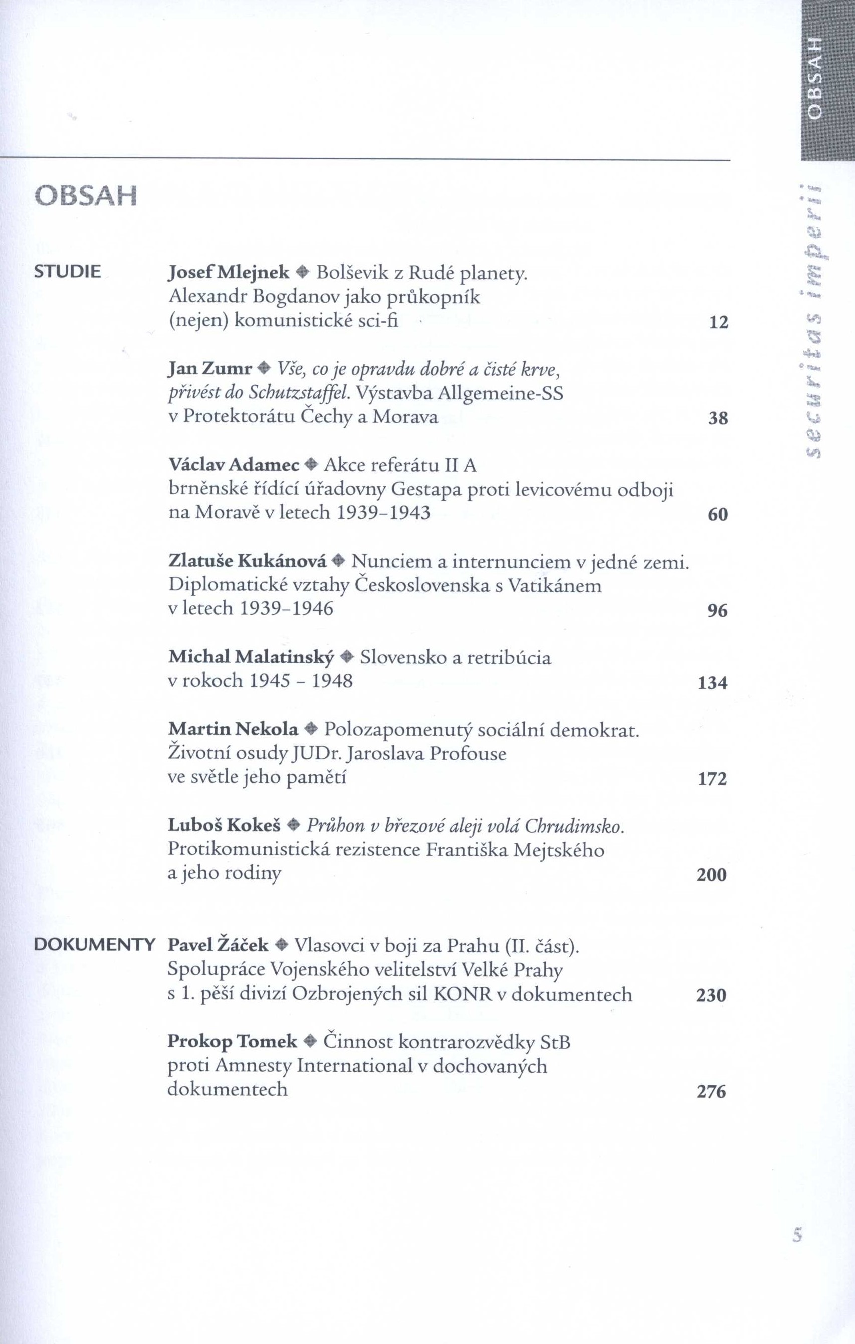 Poznámka o dalších původcích Vedoucí redaktor Patrik Virkner Grafická úprava a sazba Jaroslav Ježek Druh dok. PERIODIKA - Přijatá čísla Periodicita 2x ročně Poznámky o skryté bibliografii a rejstřících Obsahuje bibliografické odkazy. - Informace o autorech Nadřízená jednotka Securitas imperii Klíčová slova Československo * Slovensko * Vatikán * totalitní režimy * politický vývoj * diplomatické styky * 2. světová válka * německá okupace * nacismus * Protektorát Čechy a Morava * protektorátní období * KSČ * gestapo * represe * r. 1939-1943 * studie * dokumenty * rozhovory * recenze * sborník MDT (437) * (437.6) * 329.17 * 82-83 * 82.07 Signatura Přír.číslo Lokace Info LITc 0297 0946/2021 Fond