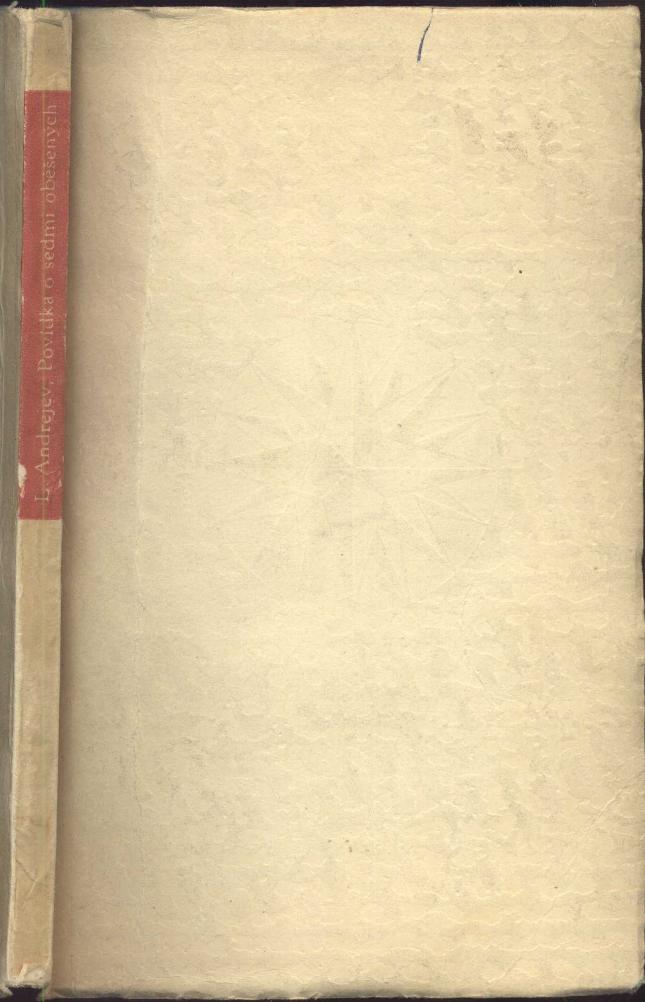 Title information Povídka o sedmi oběšených / Leonid Andrejev ; z ruského originálu Rasskaz o semi povešennych přeložila Ludmila Dušková Personal name Andrejev, Leonid Nikolajevič, 1871-1919 (Author) Další autoři Dušková, Ludmila, 1932-2010 (Translator) Fromková, Jarmila, 1922-2011 (Author of introduction) Muzika, František, 1900-1974 (Book designer) Corporation Státní nakladatelství krásné literatury, hudby a umění (Publisher) Mír, novinářské závody (tiskárna) (Printer) Edition statement Vydání třetí Publication Praha : Státní nakladatelství krásné literatury, hudby a umění 1958 Manufacture Praha : Mír, novinářské závody 01 Scope 137 stran ; 17 cm ISBN (Brožováno) Edition Světová četba ; svazek 177