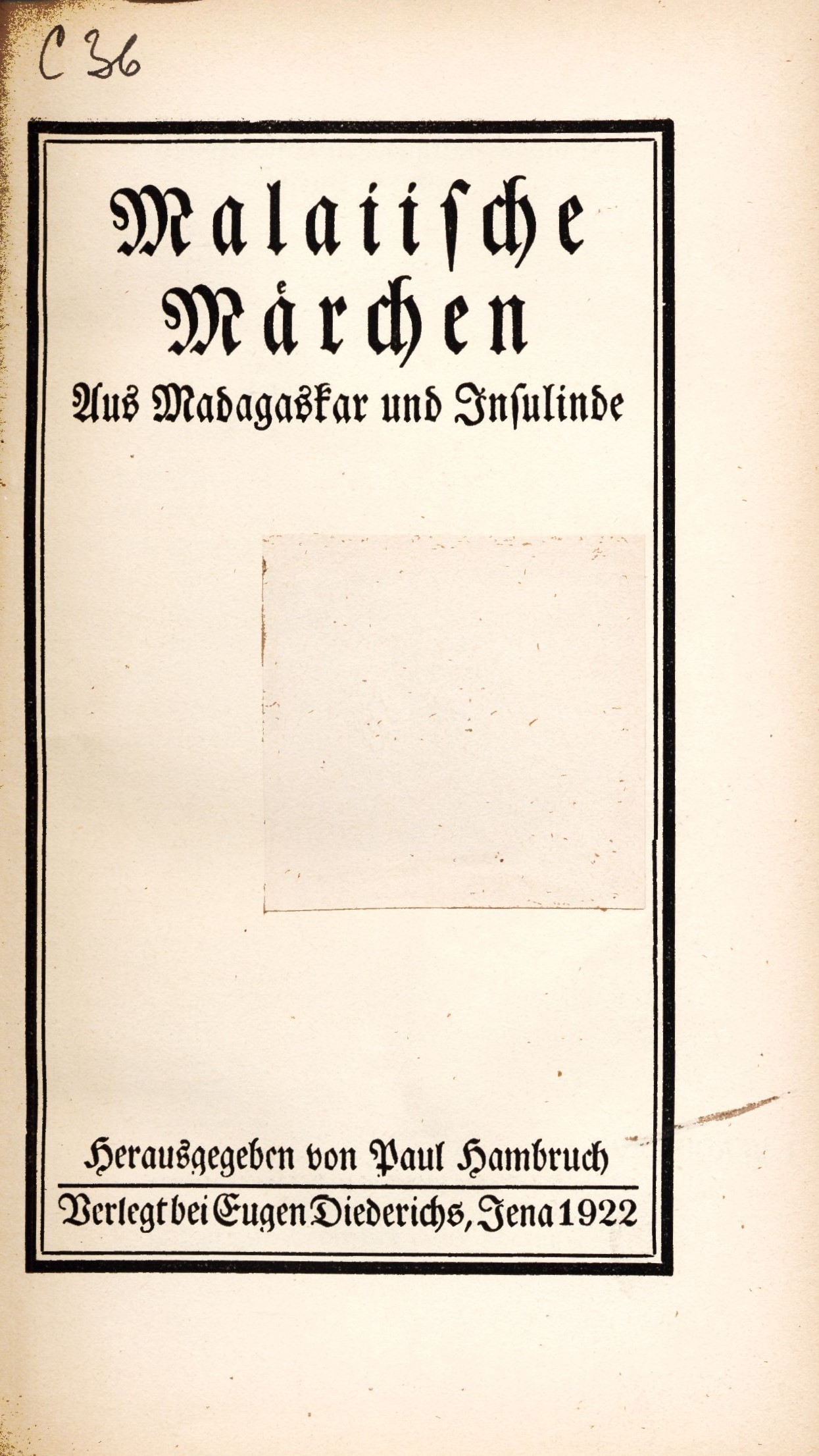 Názvové údaje Malaiische Märchen : aus Madagaskar und Insulinde / herausgegeben von Paul Hambruch Osobní jméno Hambruch, Paul, (Autor) 1882-1933 Další autoři Oscar Brandstetter Verlag (Tiskař) Eugen Diederichs Verlag (nakladatelství) (Nakladatel, vydavatel) Nakladatel Jena : Eugen Diederichs, 1922 Výrobce in Leigzig : gedruckt bei Oscar Brandstetter Rozsah 330 stran, 4 nečíslované listy obrazových příloh : ilustrace ; 20 cm ISBN (vázáno) Edice Die Märchen der Weltliteratur