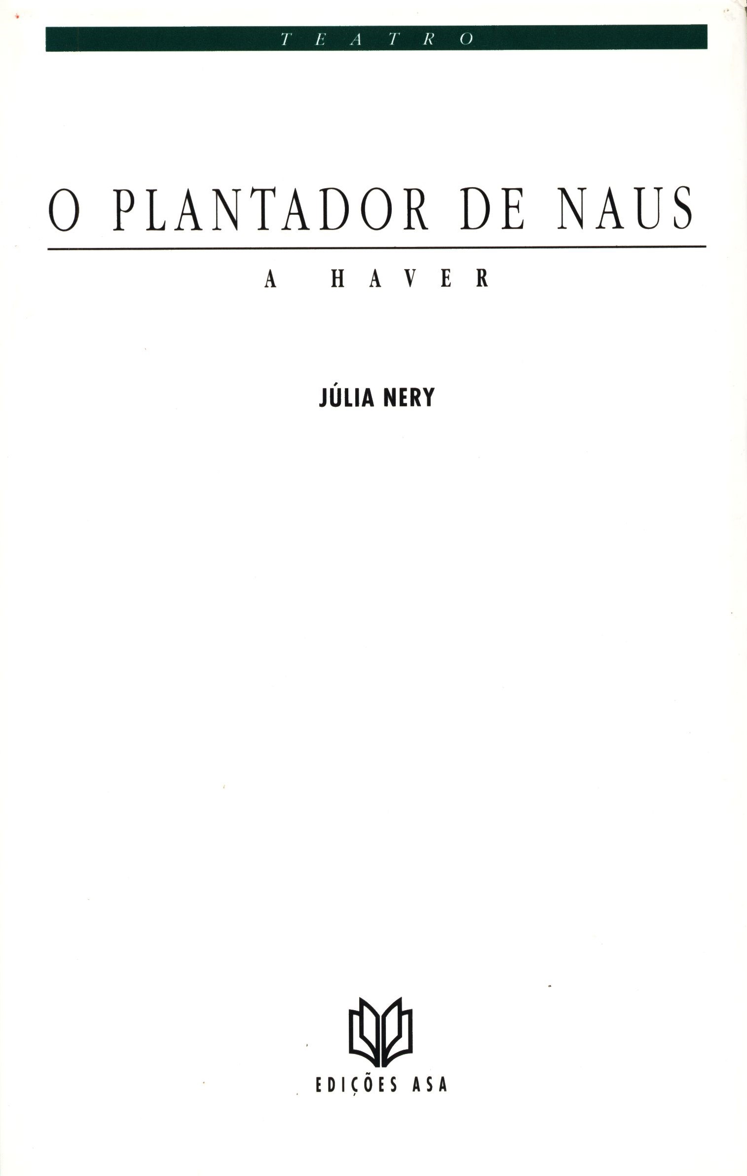 Názvové údaje O plantador de naus a haver / Júlia Nery Osobní jméno Nery, Júlia, 1939- (Autor) Další autoři Edições Asa (Nakladatel, vydavatel) Nakladatel Porto : Edições Asa, 1994 Rozsah 127 stran ; 21 cm ISBN 972-41-1097-4 (vázáno) Edice Teatro ; 4