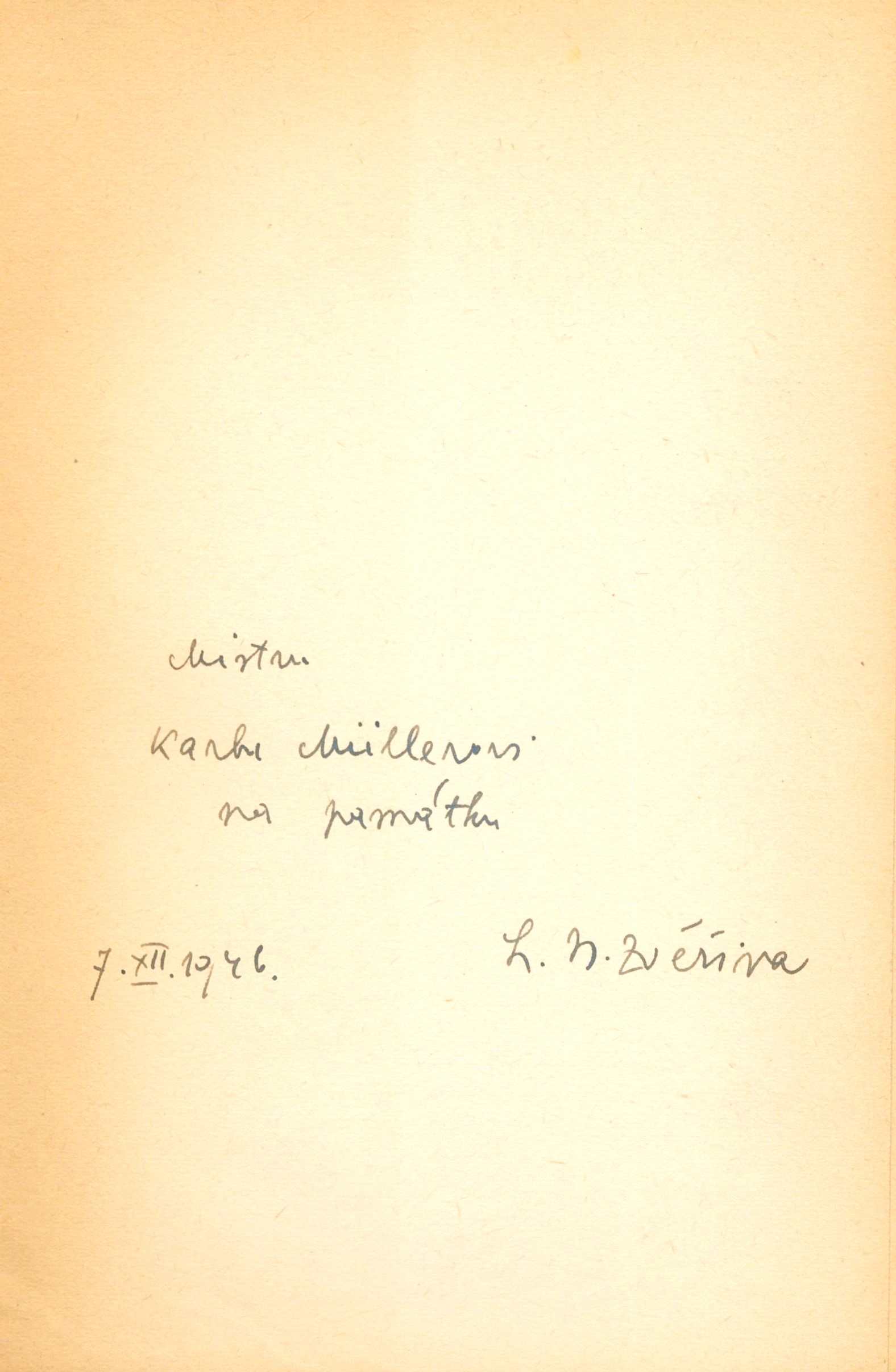 Anotace Kniha se zabývá obdobím let 1939-1945 a popisuje utrpení českého národa za druhé světové války. Konkrétně se kniha zaměřuje na události spojené s uzavřením českých škol a vraždami a popisuje toto období plné násilí a utrpení. Druh dok. monografie Klíčová slova česká literatura * literatura faktu * próza * zločiny nacismu * 2. světová válka * Česko * r. 1939-1945 MDT 82-3 * 821.162.3 Uživatelské pole PNP Na vakátě ručně psané věnování K. Müllerovi (malíř) s podpise autora a datací 7.12. 1946. - Na titulním listu ruční podpis l.N. Zvěřina. Signatura Přír.číslo Lokace Info C12b 19727 1026/2025 Sbírka