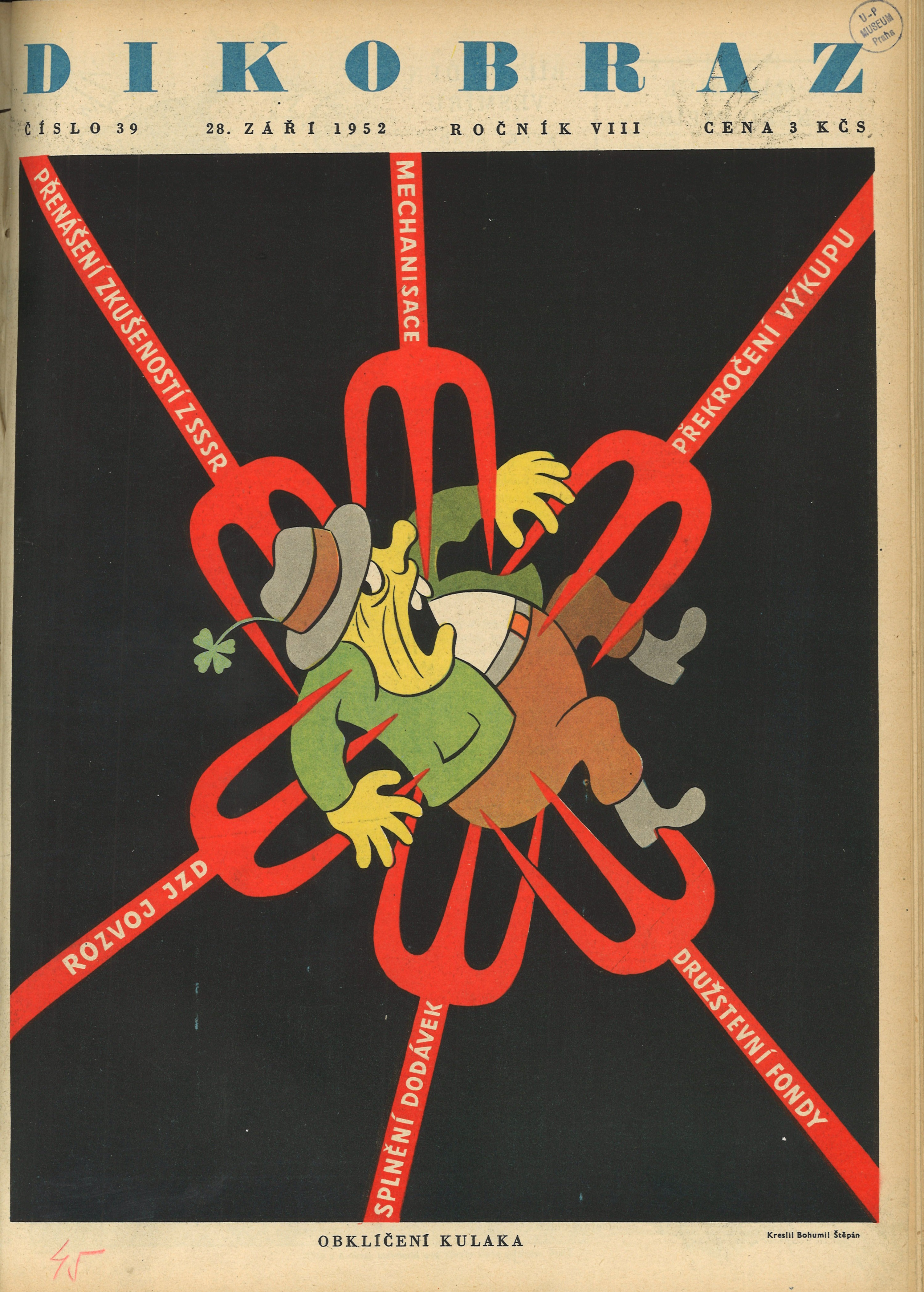 Názvové údaje Dikobraz : satirický týdeník Další autoři Kohout, Pavel, 1928- (Redaktor, výkonný redaktor) Seyček, Evžen, 1917-2009 (Redaktor, výkonný redaktor) Korp. Práce (nakladatelství, tiskárna) (isb) Svoboda (tiskárna) (Tiskař) Roč., číslo Ročník 8, číslo 4, 6-14, 16-23, 25-32, 34-52, 1952 Nakladatel Praha : Práce, vydavatelstvo ROH, 1952 Výrobce Svoboda, n. p., závod 2 Rozsah 414 stran : ilustrace ; 37 cm ISSN 0012-284X Země vyd. Česko Jazyk dok. čeština Poznámky Barevné obálky. - Čb. i barevné ilustrace. - Kreslené vtipy.